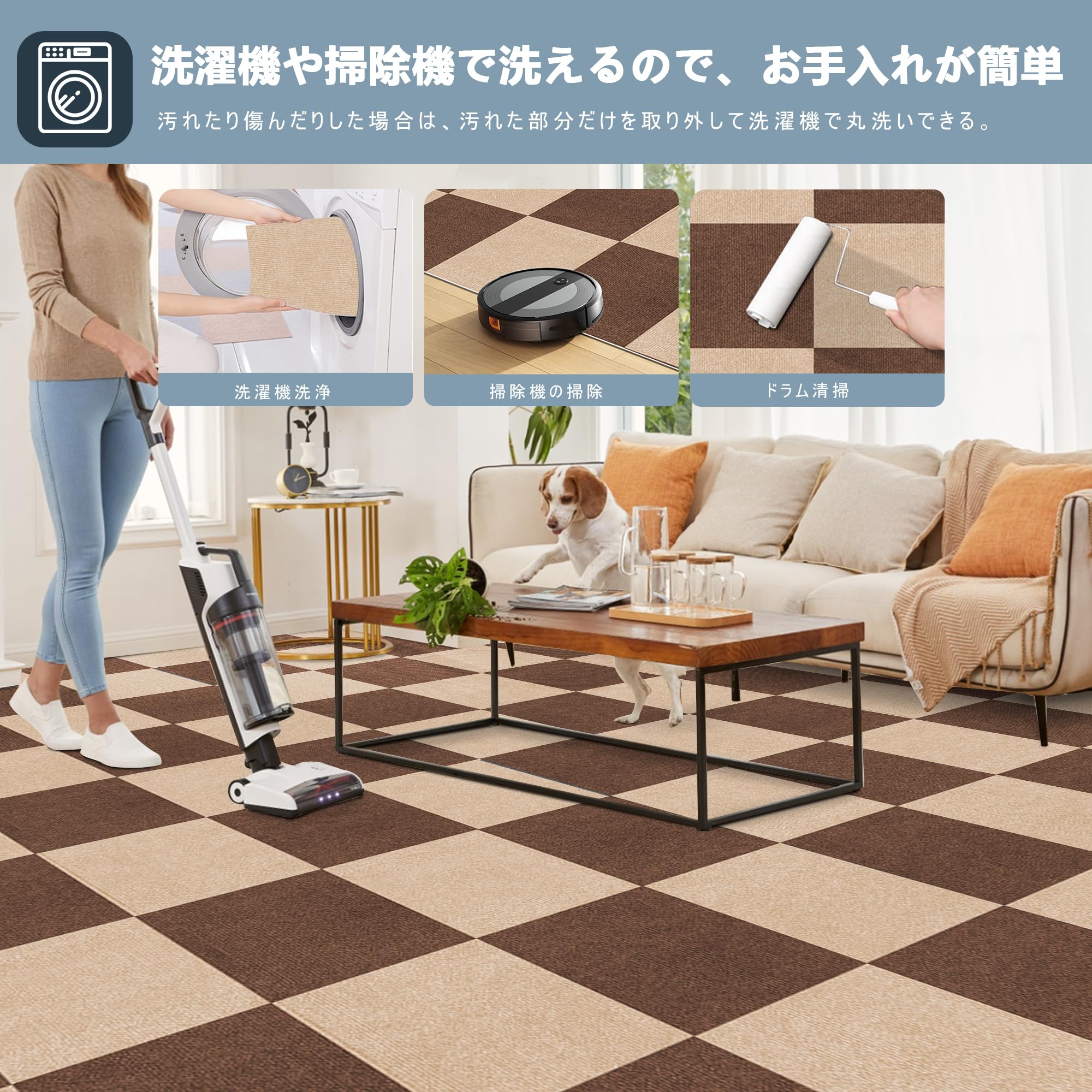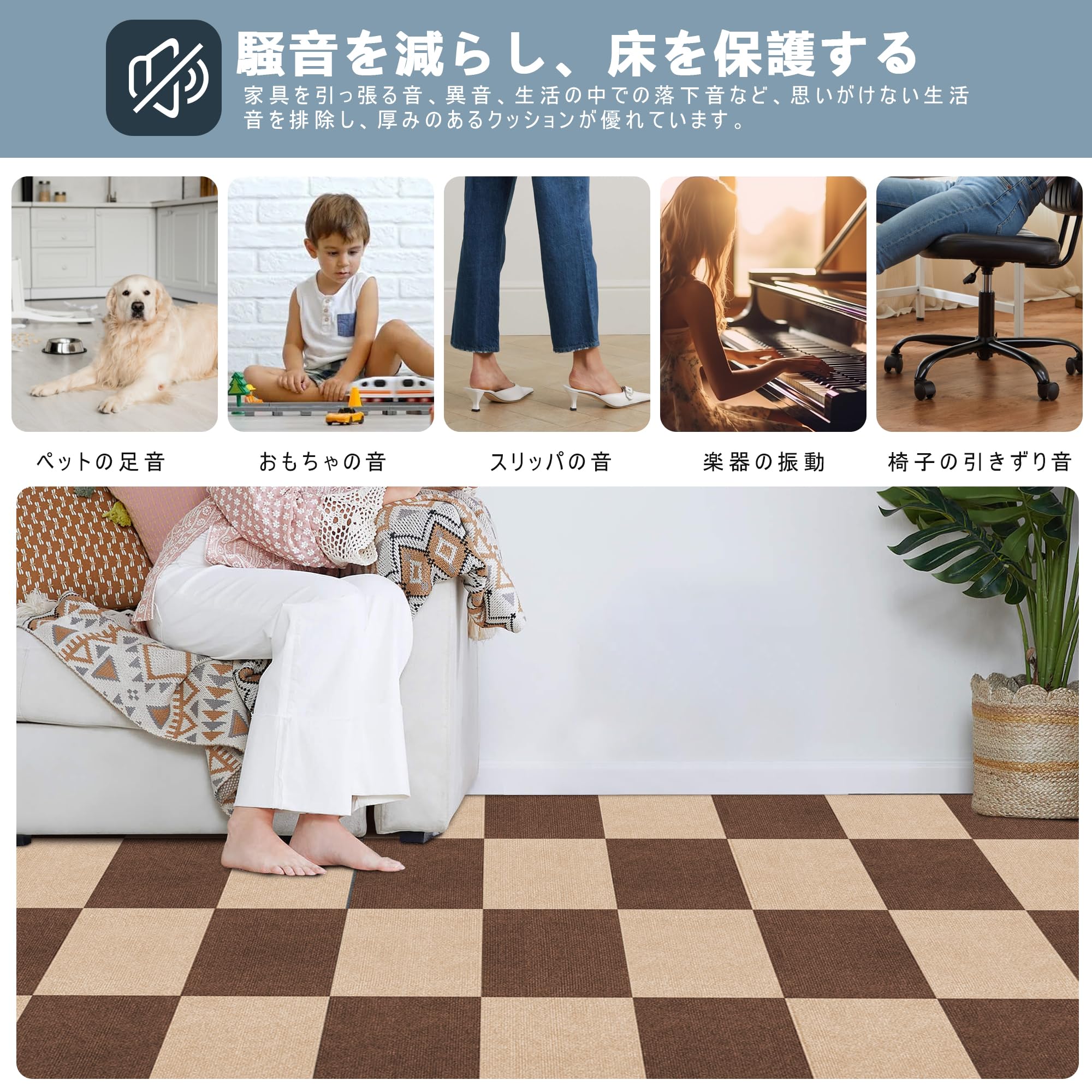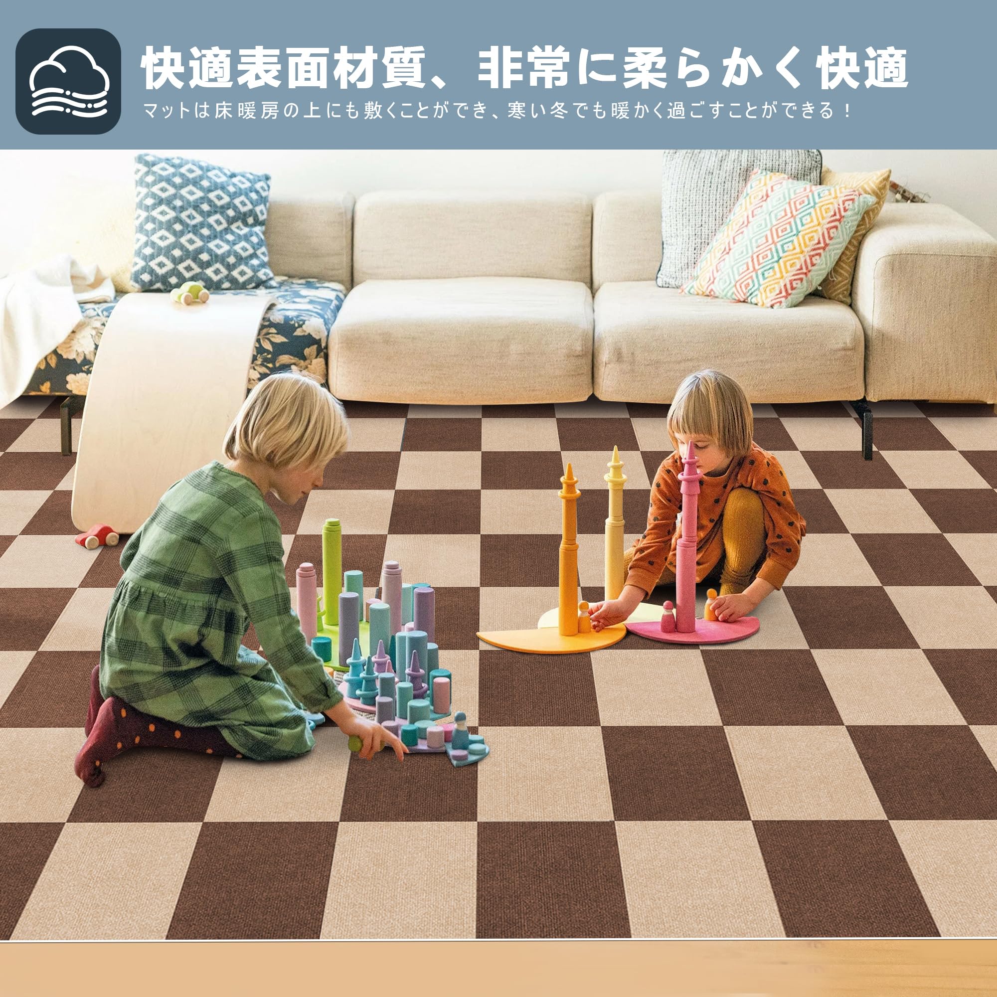 大判 タイルカーペット ジョイントマット 30*30cm&36枚入 HAODEMI 吸着マット ペット 大判 床 子供 ペット 足音 タイルマット 床保護マット ペット用 設置簡単 ペット/高齢者の滑り止め対策 自由にカット可能 洗える 洗濯 家庭/オフィス/事務所 (ブラウン+ベージュ)