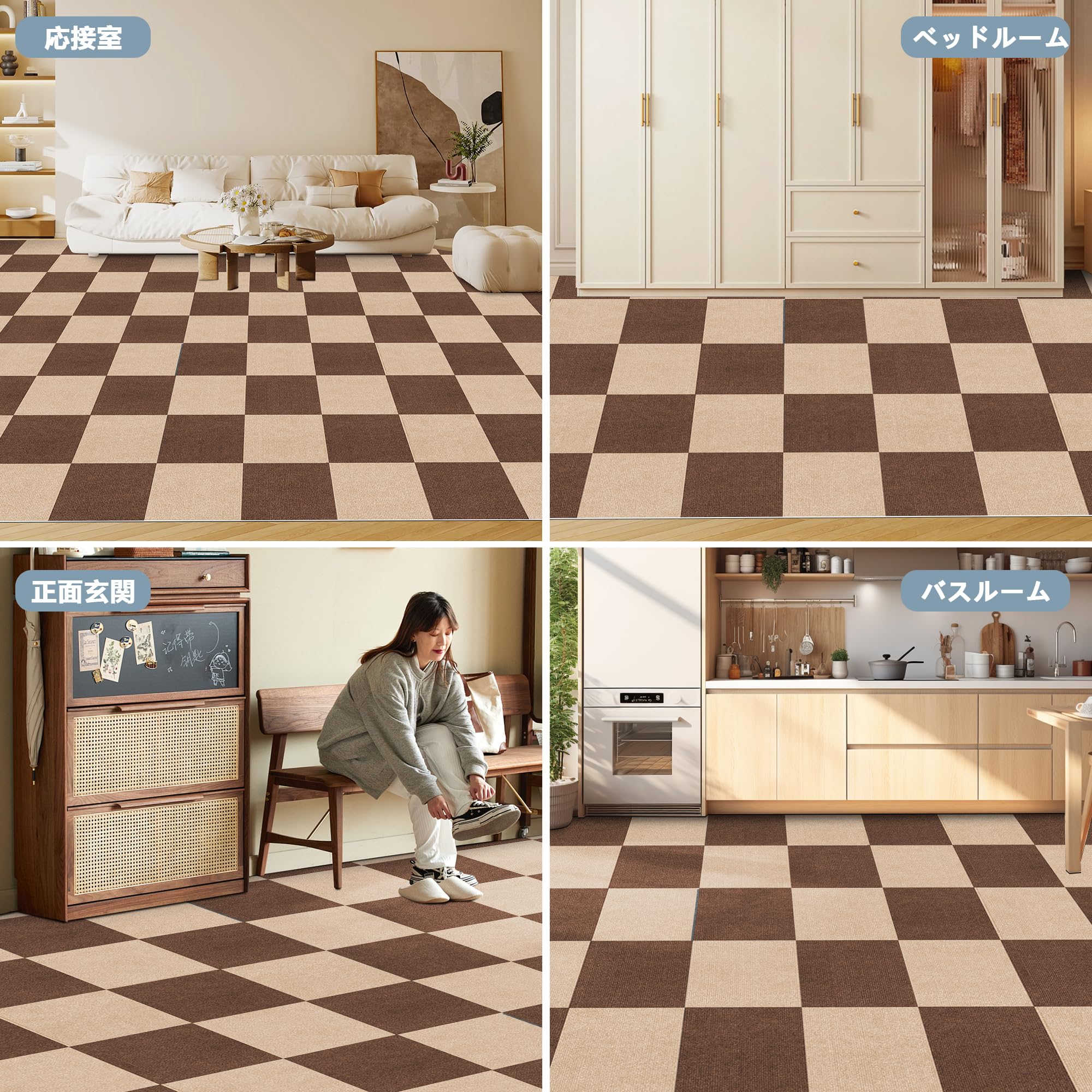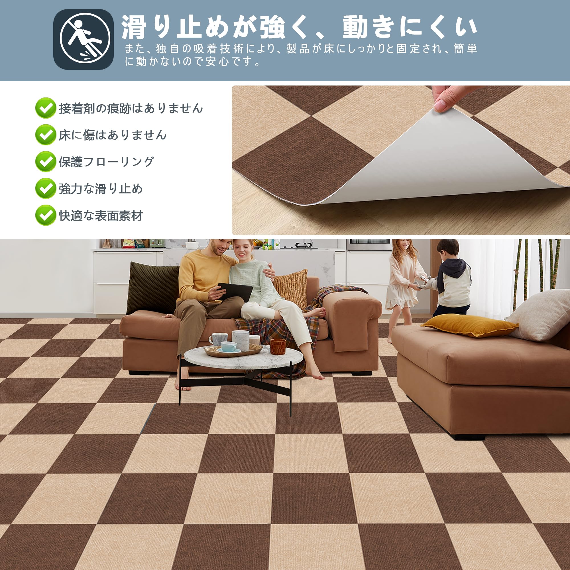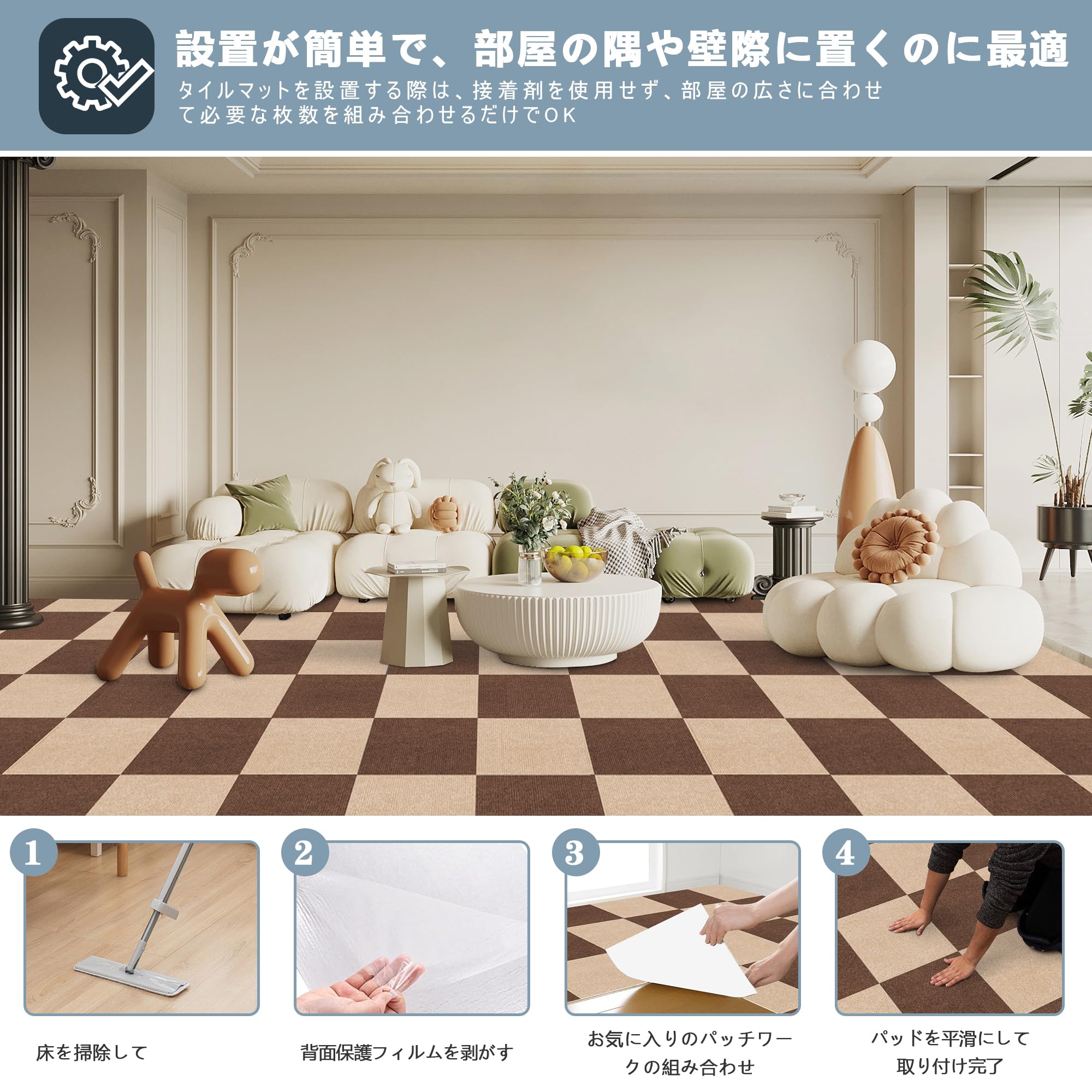 大判 タイルカーペット ジョイントマット 30*30cm&36枚入 HAODEMI 吸着マット ペット 大判 床 子供 ペット 足音 タイルマット 床保護マット ペット用 設置簡単 ペット/高齢者の滑り止め対策 自由にカット可能 洗える 洗濯 家庭/オフィス/事務所 (ブラウン+ベージュ)