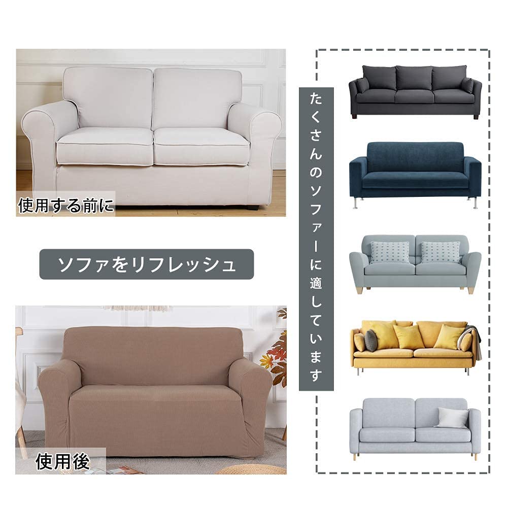 サイズ:【1人掛け:80-120cm】【2人掛け:140-180cm】【3人掛け:185-230cm】 サイズが豊富でソファーにぴったりのサイズが選べます。1人掛けのサイズはミニソファーと1人用ソファーに適用されます。ソファーカバー三人掛け肘ありに適しています。