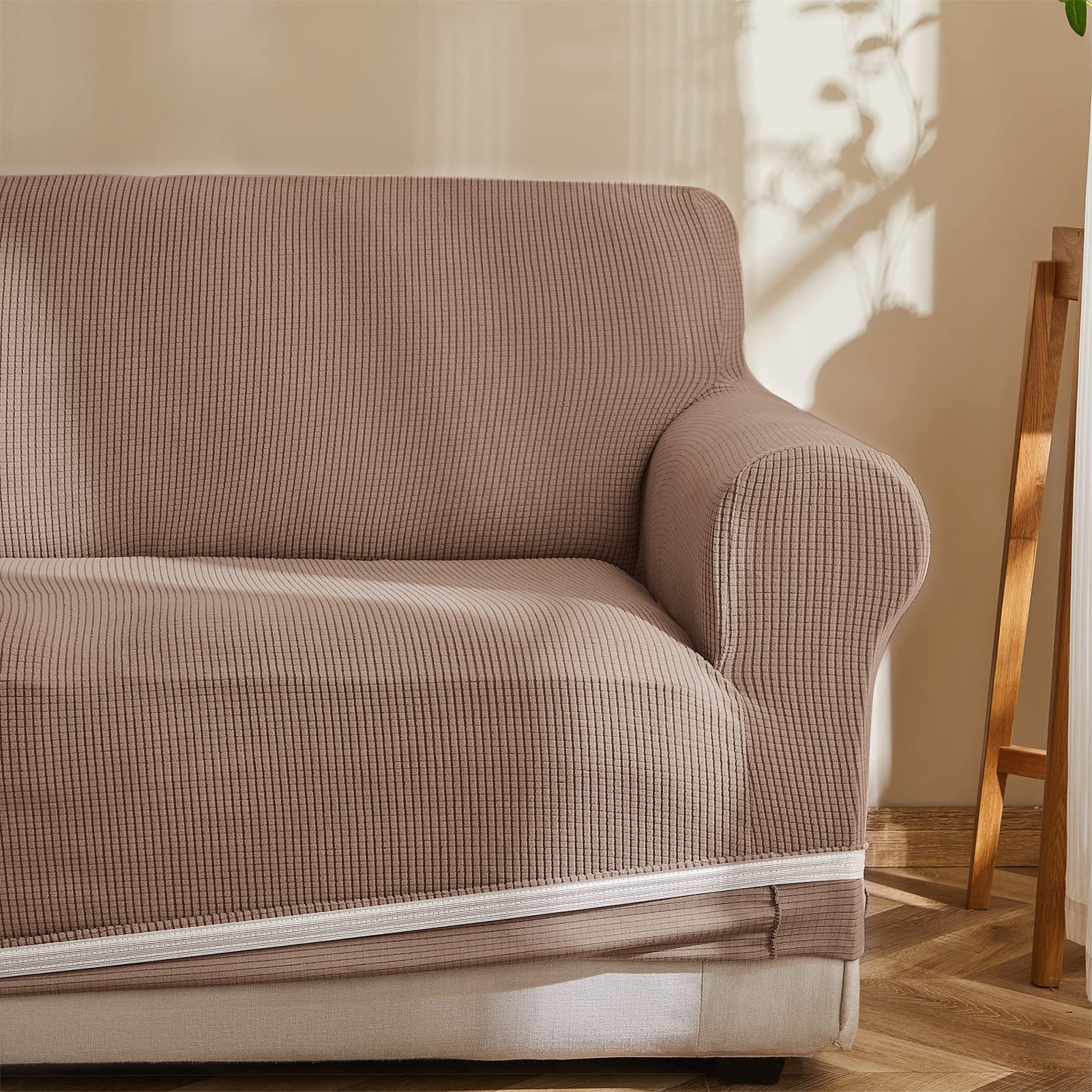 Topfinel ソファーカバー 3人掛け 肘付き 無地 北欧風 ストレッチ フィットタイプ 伸縮素材伸び良く 滑り止め 柔らかい 犬 猫 傷 防止 超便利(濃いコーヒー)