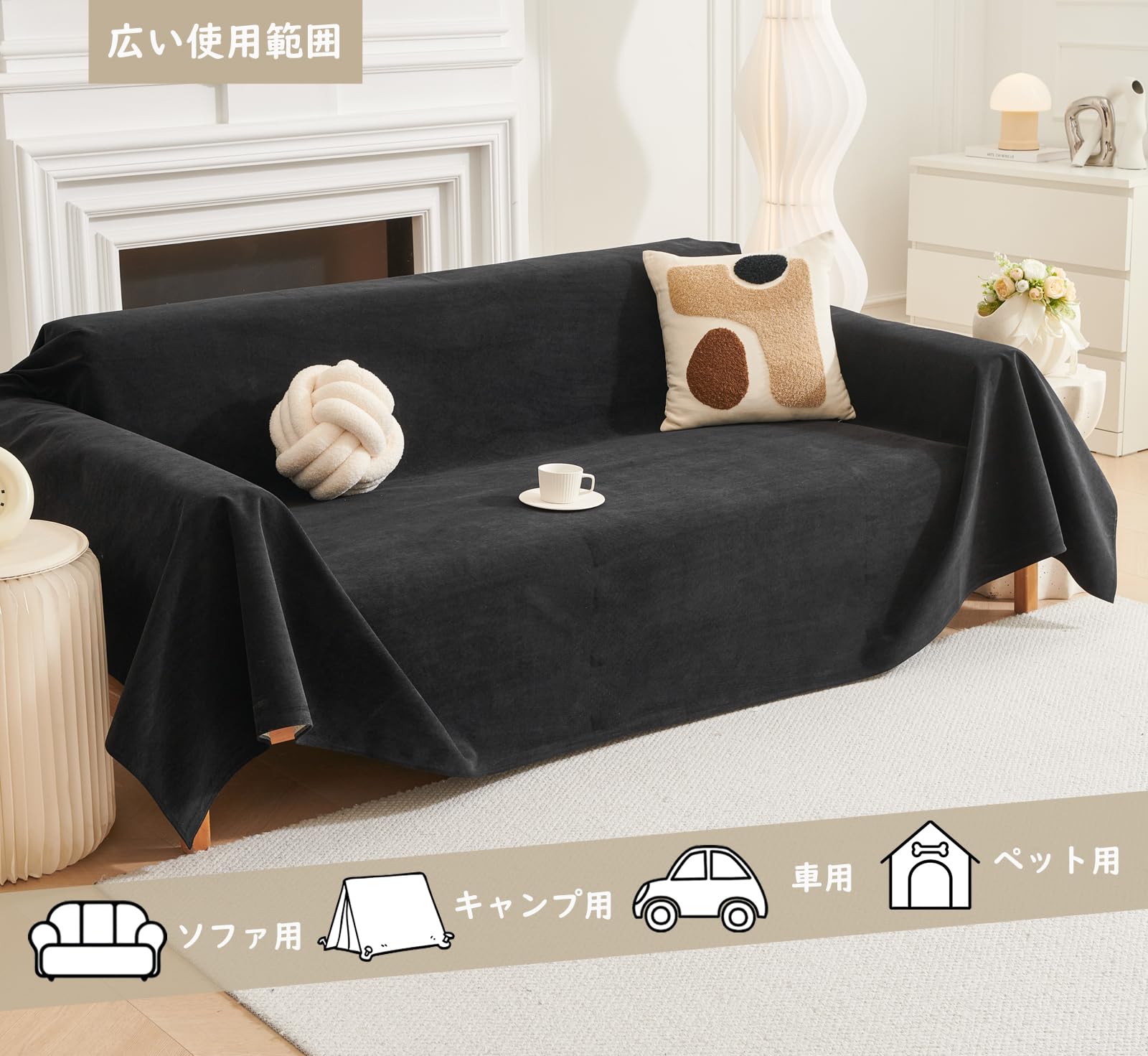 【在庫処分】ソファーカバー 犬猫対策 北欧風 マルチカバー 長方形 大判 撥水加工 ソファカバー 2人3人掛け 肘付き 肘なし 柔らかい ソファーベッドカバー 多機能 ブランケット 無地 ソファーシーツ 犬猫用シート 爪とぎ防止 傷防止 汚れ防止 防塵 ソファー保護カバー 洗える 四季通用 ブラック 180cm*300cm | GIGATERA