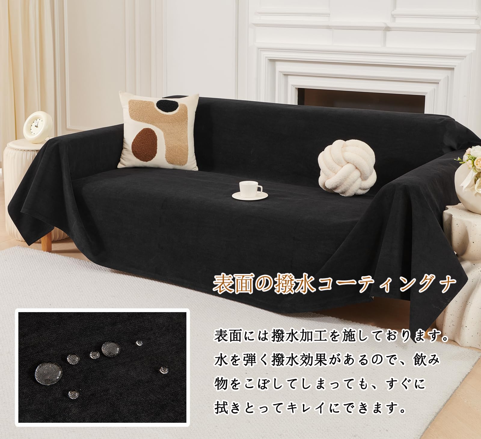 ソファーカバー 犬猫対策 北欧風 マルチカバー 長方形 大判 撥水加工 ソファカバー 2人3人掛け 肘付き 肘なし 柔らかい ソファーベッドカバー 多機能 ブランケット 無地 ソファーシーツ 犬猫用シート 爪とぎ防止 傷防止 汚れ防止 防塵 ソファー保護カバー 洗える 四季通用 ブラック 180cm*300cm