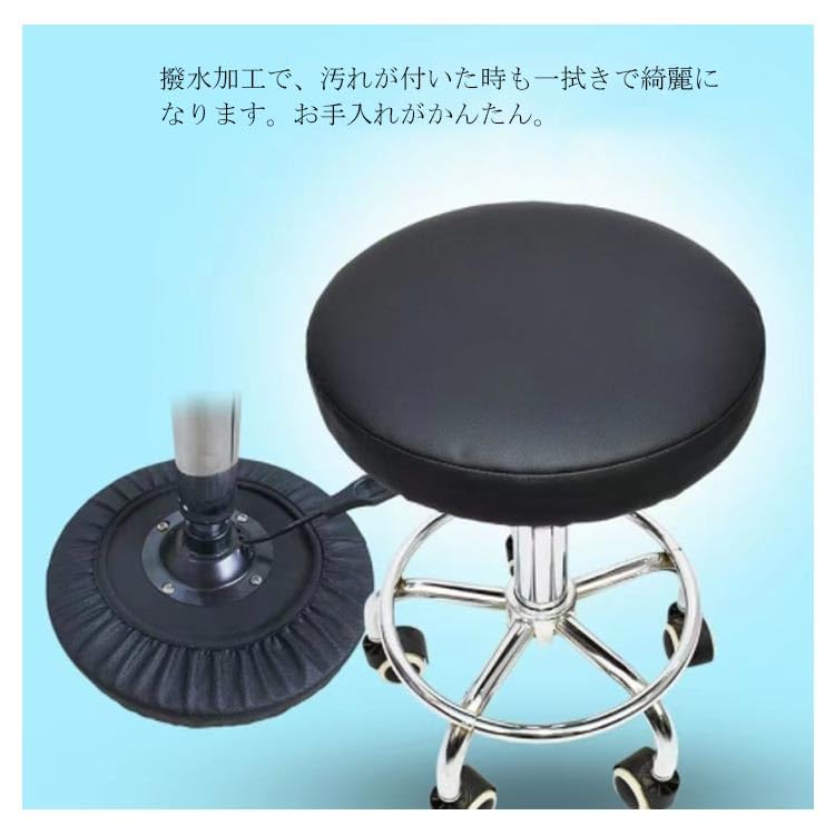 エステスツール スツールカバー PUレザー 伸縮 回転 椅子 昇降式 カバー イス チェアカバー 丸椅子カバー 座面カバー ゴム付き ズレない 汚れ防止 キズ防止-ブラック||直径36cm