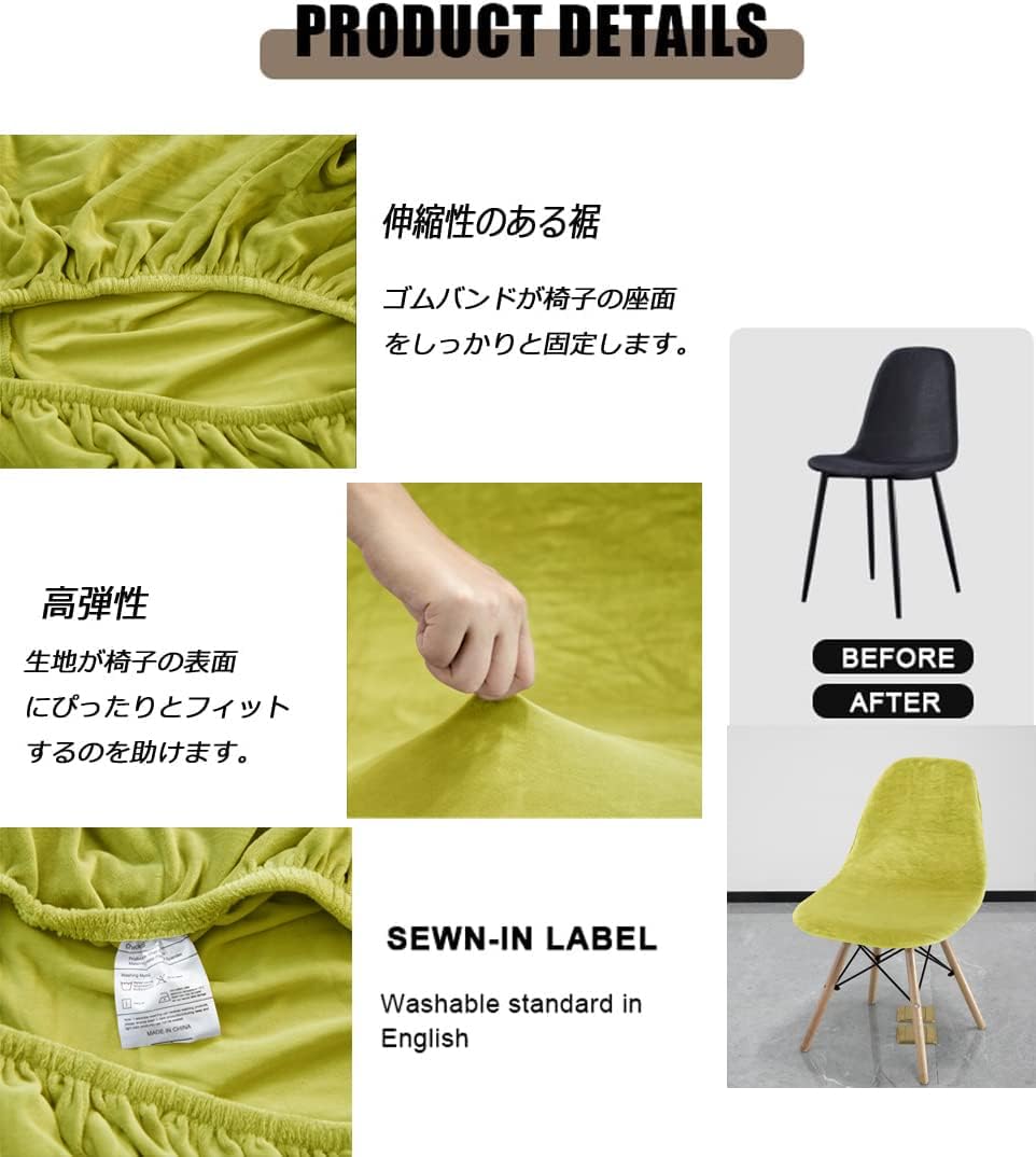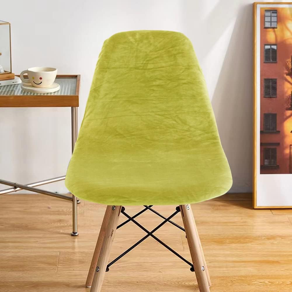 【特価】シェルチェアカバー、ベルベット生地のチェアカバーオフィス用 、伸縮性のある厚い椅子カバーオフィス用 伸縮素材 防塵 防汚 ユニバーサルサイズ&取り外し可能な洗える ダイニングチェア、ストレッチアームレスシェルチェアシート椅子用、リビングルーム キッチン チェアカバー (柔らかい草tender grass 4)… | GIGATERA