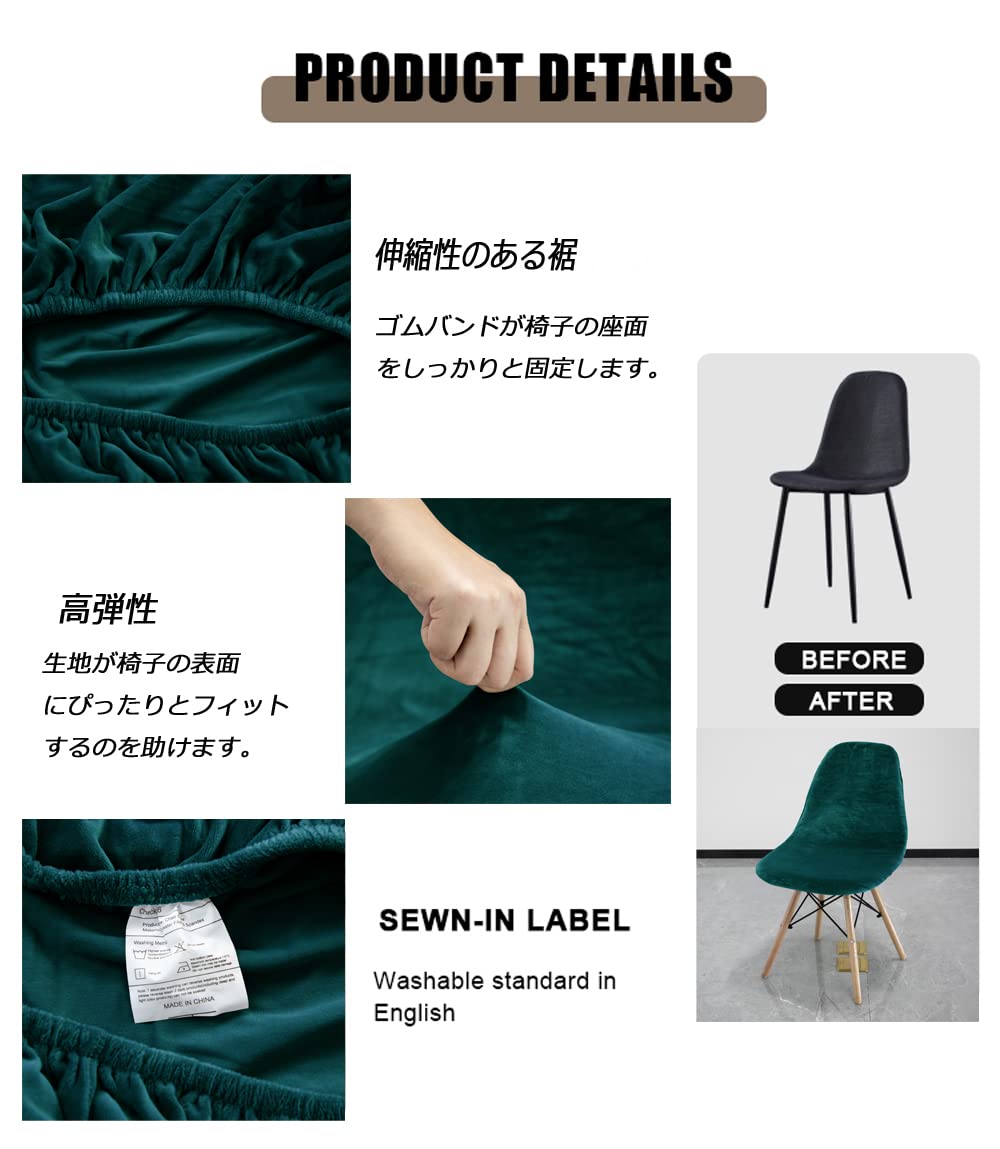 【シェルチェアカバー 4枚セット】購入する前に、椅子の背もたれの幅と高さを測定できます。推奨椅子サイズ:背もたれの幅さ:22-30cm、背もたれの高さ:40-48cm、シートの幅さ:45-52cm、シートの長さ:40-46cm。写真を参照してください。パッケージに含まれるもの:4枚セット チェアカバー、 椅子は含まず。