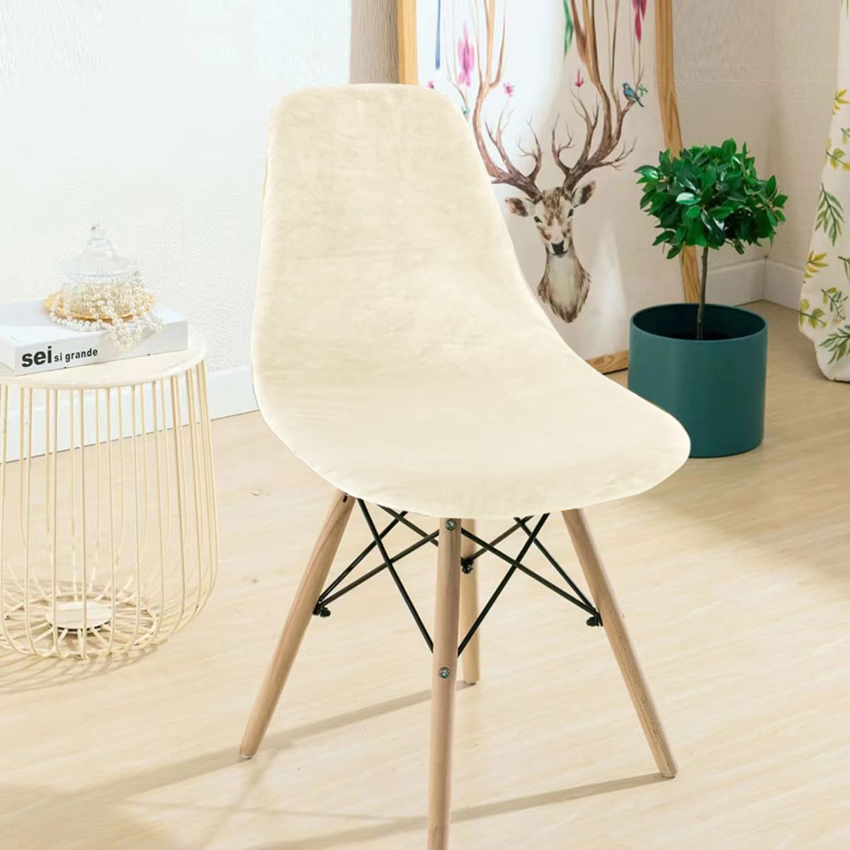 【特価在庫】シェルチェアカバー、ベルベット生地のチェアカバーオフィス用 、伸縮性のある厚い椅子カバーオフィス用 伸縮素材 防塵 防汚 ユニバーサルサイズ&取り外し可能な洗える ダイニングチェア、ストレッチアームレスシェルチェアシート椅子用、リビングルーム キッチン チェアカバー (ベージュ 4)…