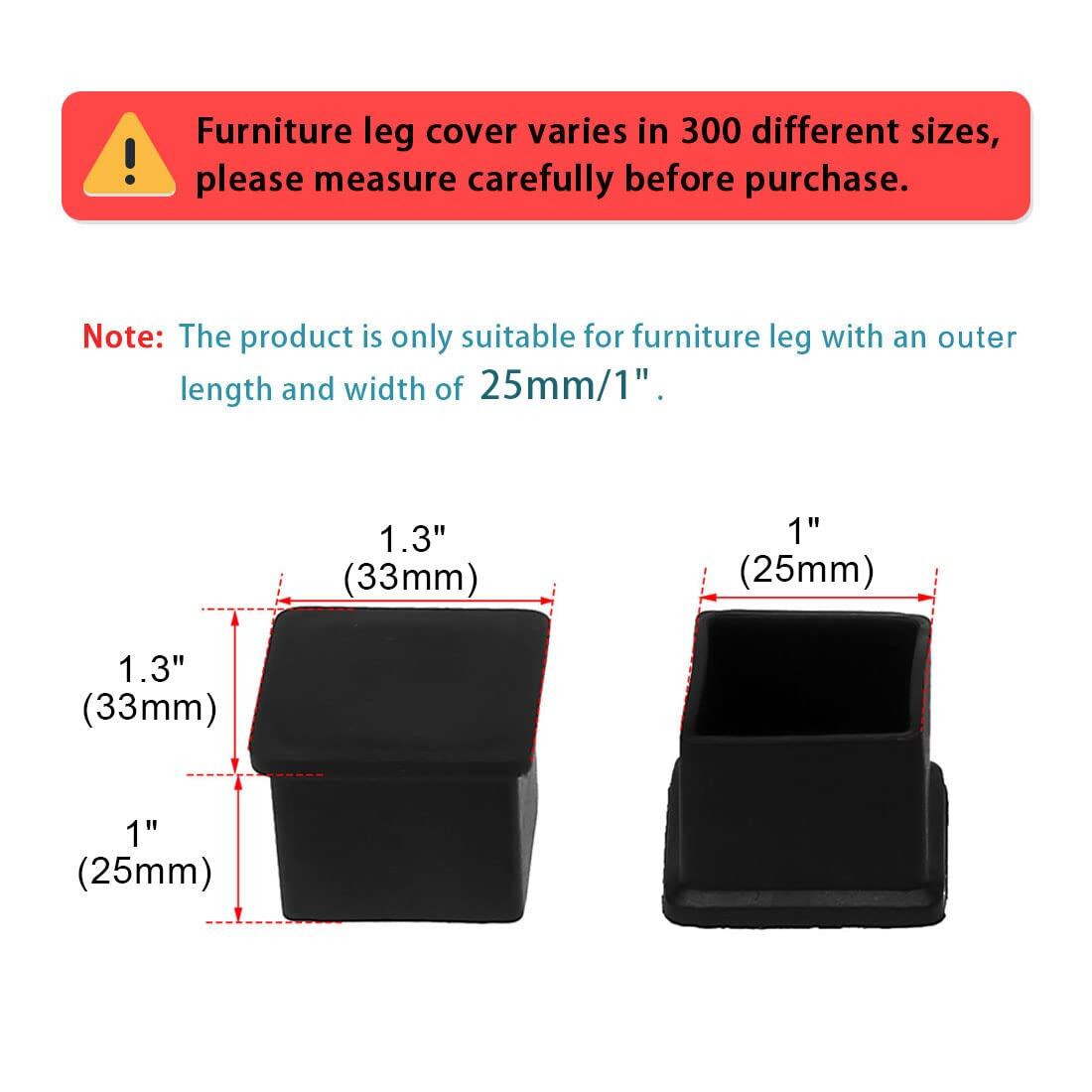 uxcell 椅子脚カバー 椅子足キャップ イス 足キャップ 椅子の足 キズ防止 騒音防止 テーブル椅子足キャップ 家具の脚カバー 足パッド 脚キャップ 正方形 滑り止め 椅子 テーブル ブラックカバー 4個入り