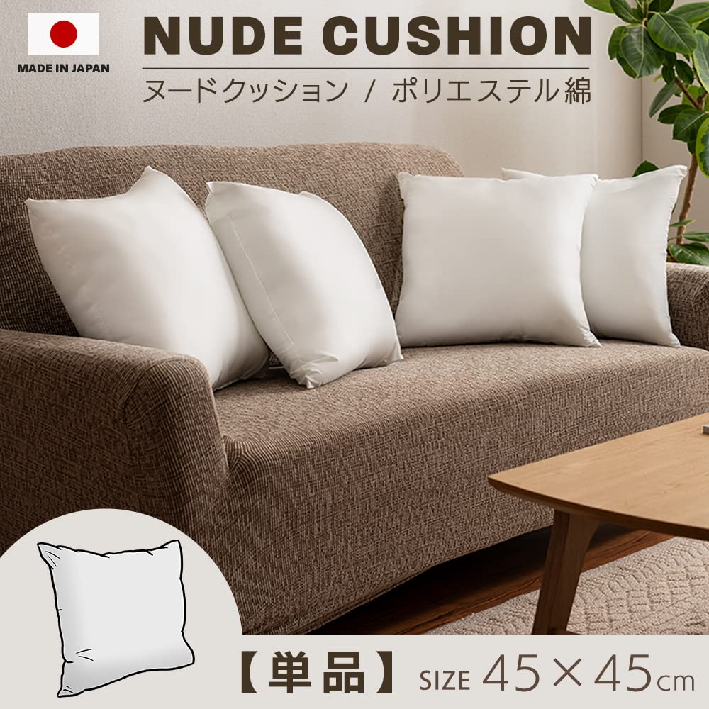 アイリスプラザ(IRIS PLAZA) ヌードクッション 45×45cm 日本製 1個単品 [セット販売あり] 軽量370g 丸洗い可/洗濯機可 圧縮なしでふかふか ポリエステル綿 背当て ホワイト