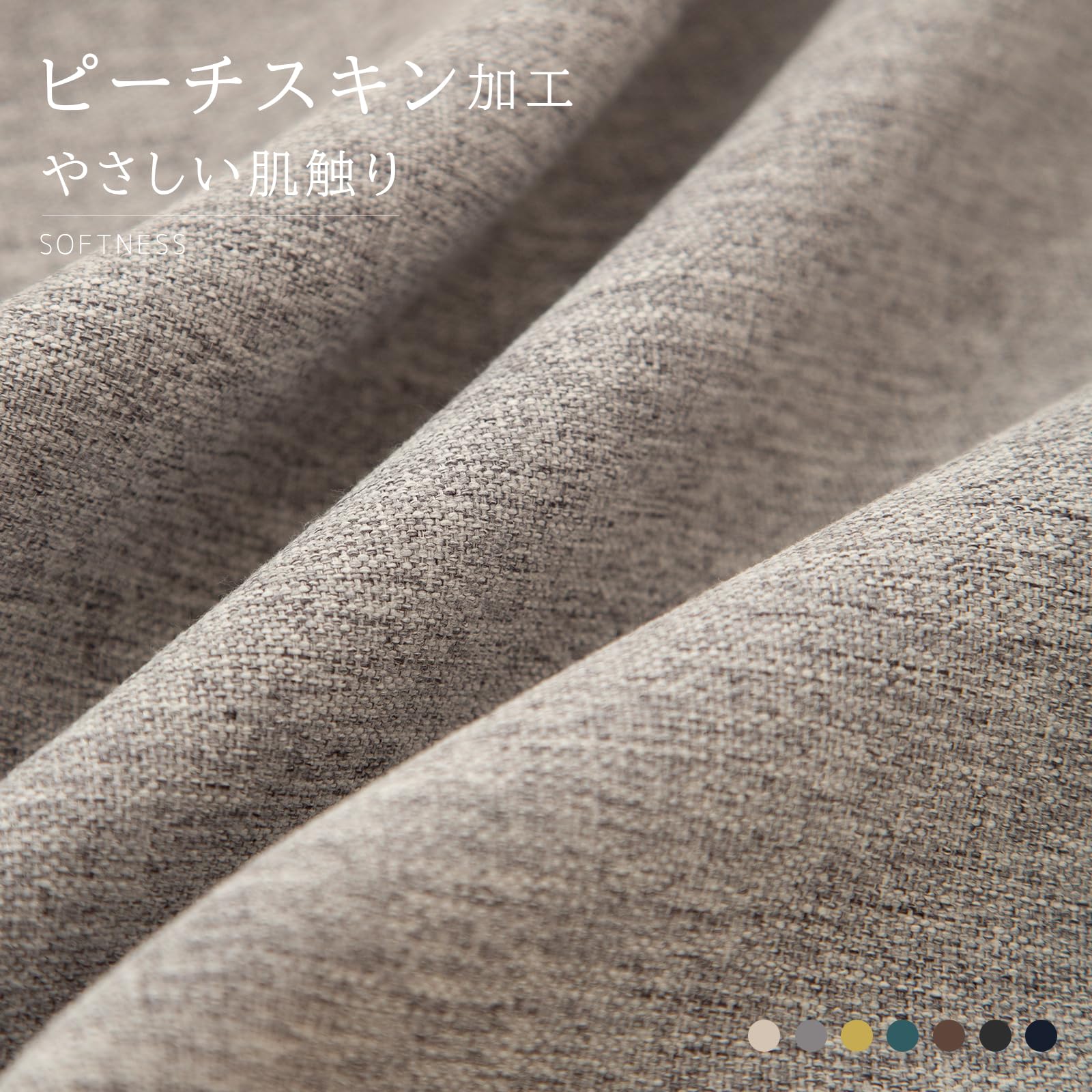 「素材」高品質なポリエステル100%。リネン風の見た目と高級感があり、ピーチスキン加工により手触りが非常に柔らかいです。抗菌、アレルギー防止機能を備え、高い吸水性と速乾性で、洗濯も簡単。環境に優しく、肌に触れても安心です。