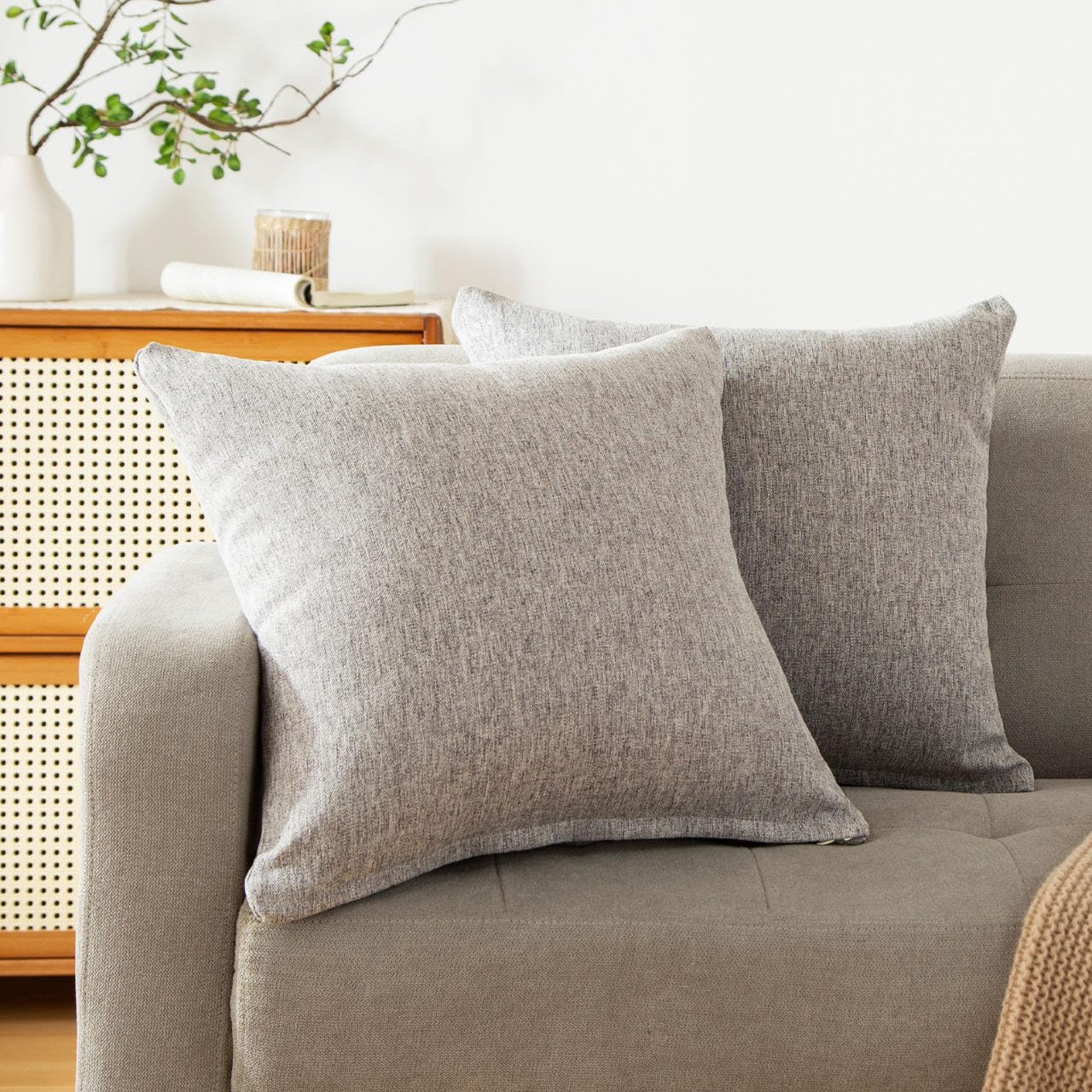 クッションカバー 65 x 65cm 2枚セット グレー 北欧 おしゃれ 綿麻テクスチャー リネン風 ピーチスキン ソフトタッチ 座布団カバー ソファ背当て 装飾枕カバー ミストグレー