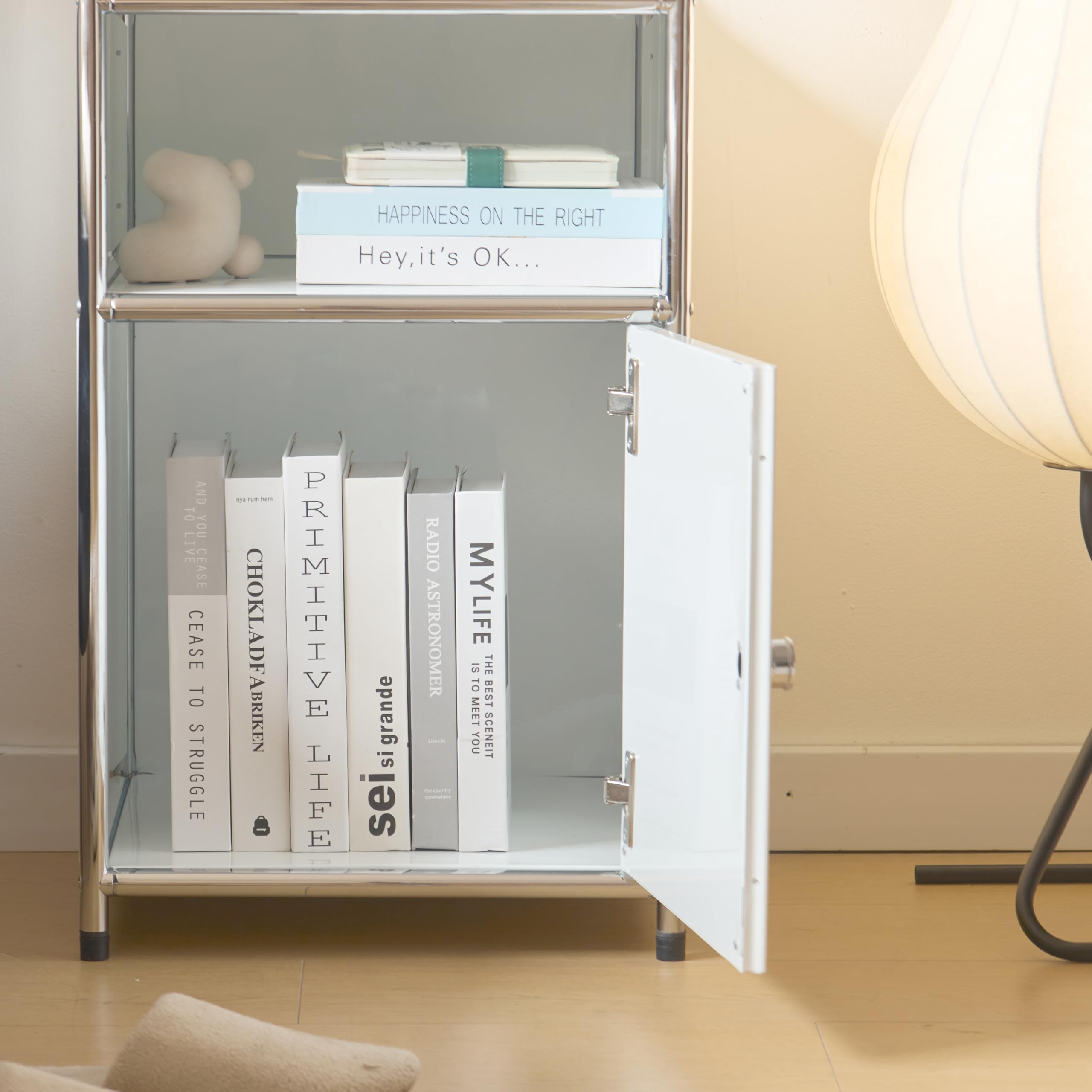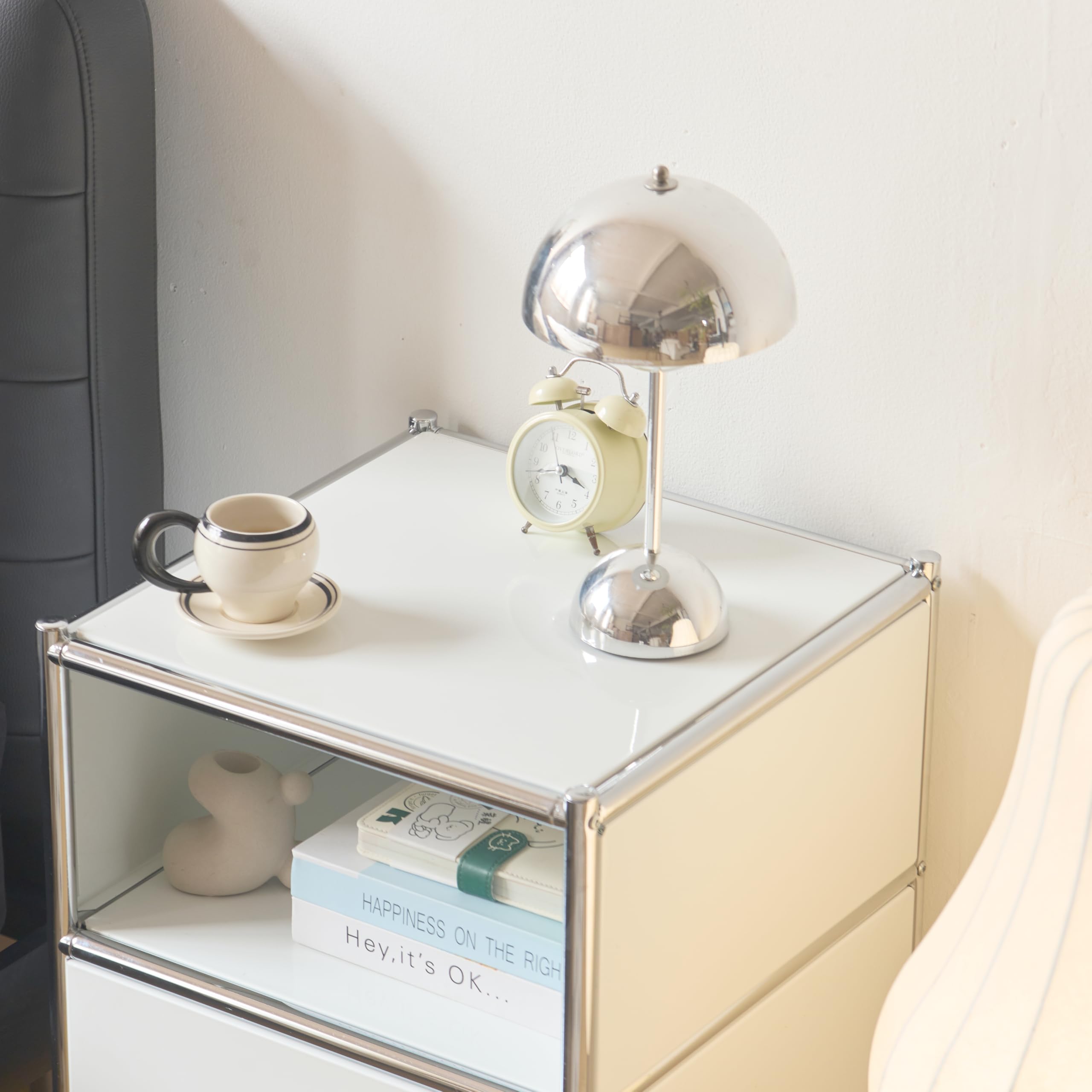 サイドテーブル ナイトテーブル モジュールテーブル モジュール家具 幅 40cm × 奥行 40cm × 高さ 64cm (ホワイト)
