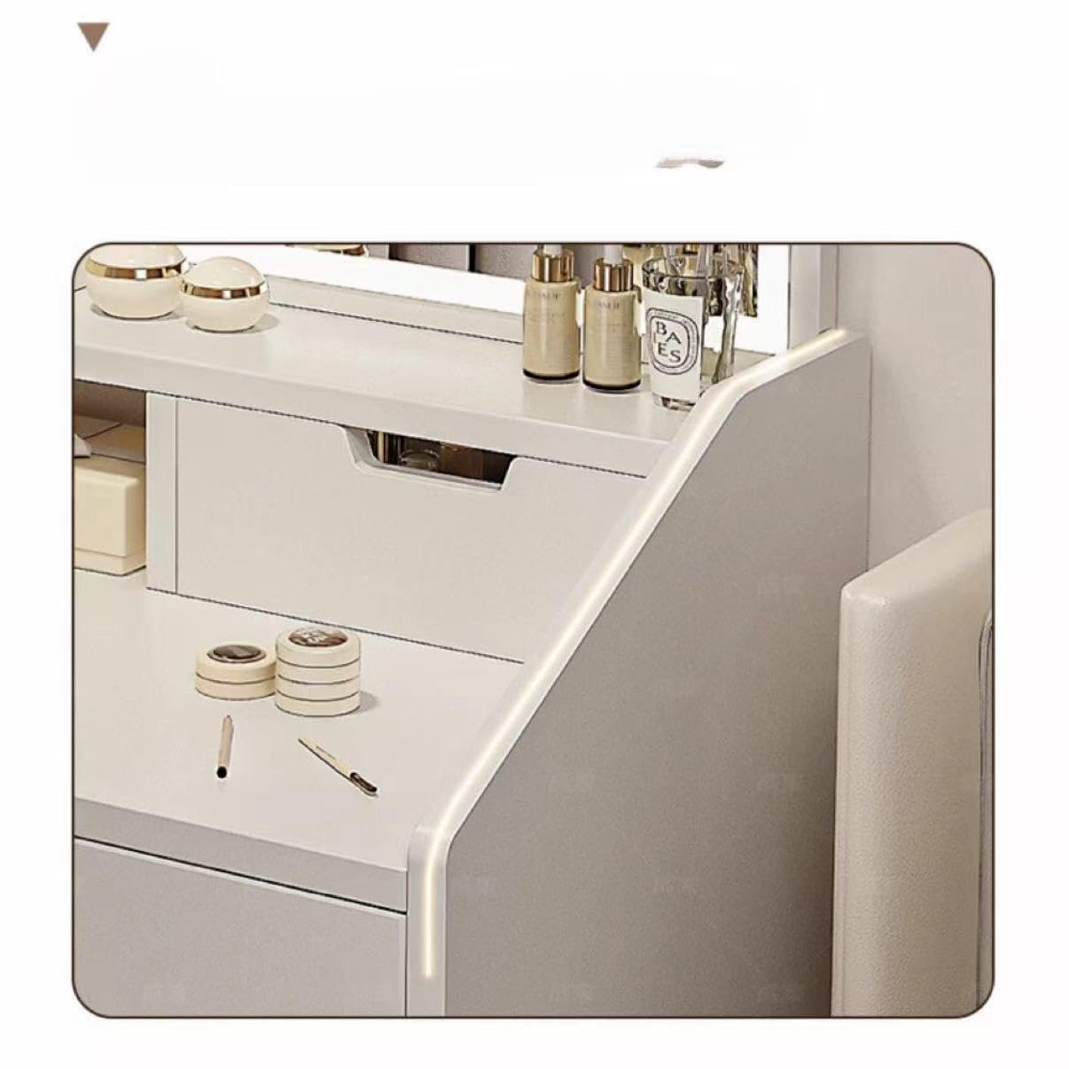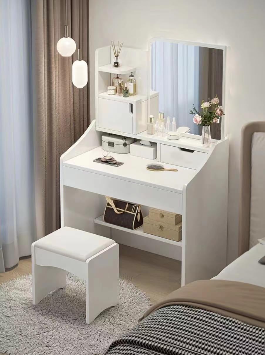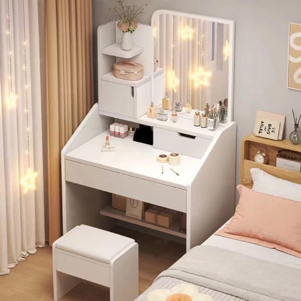 【スタイリッシュなデザイン】 - 直線的なデザインは、寝室にシンプルさとモダンなファッションを示しています。この柔らかいスツール (オプション) は、快適なメイクアップ体験を提供します。余分なスペースを取る代わりに、化粧台の下に置くことができます。
