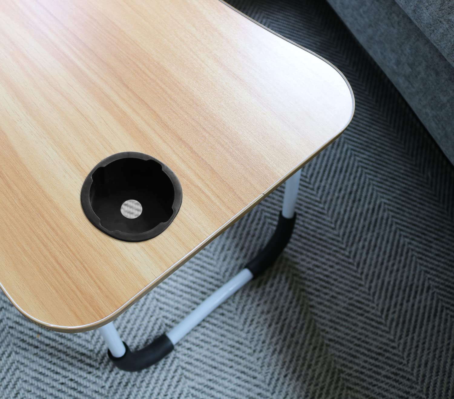 トレードワン(TRADE ONE) 折りたたみガジェットテーブル ノーマルサイズ ソファでお仕事 耐荷重10kg コンパクト 幅60×奥行40×高さ26.5cm タブレットスタンド付き ドリンクホルダー付き 持ち運び便利 ブラウン 60122