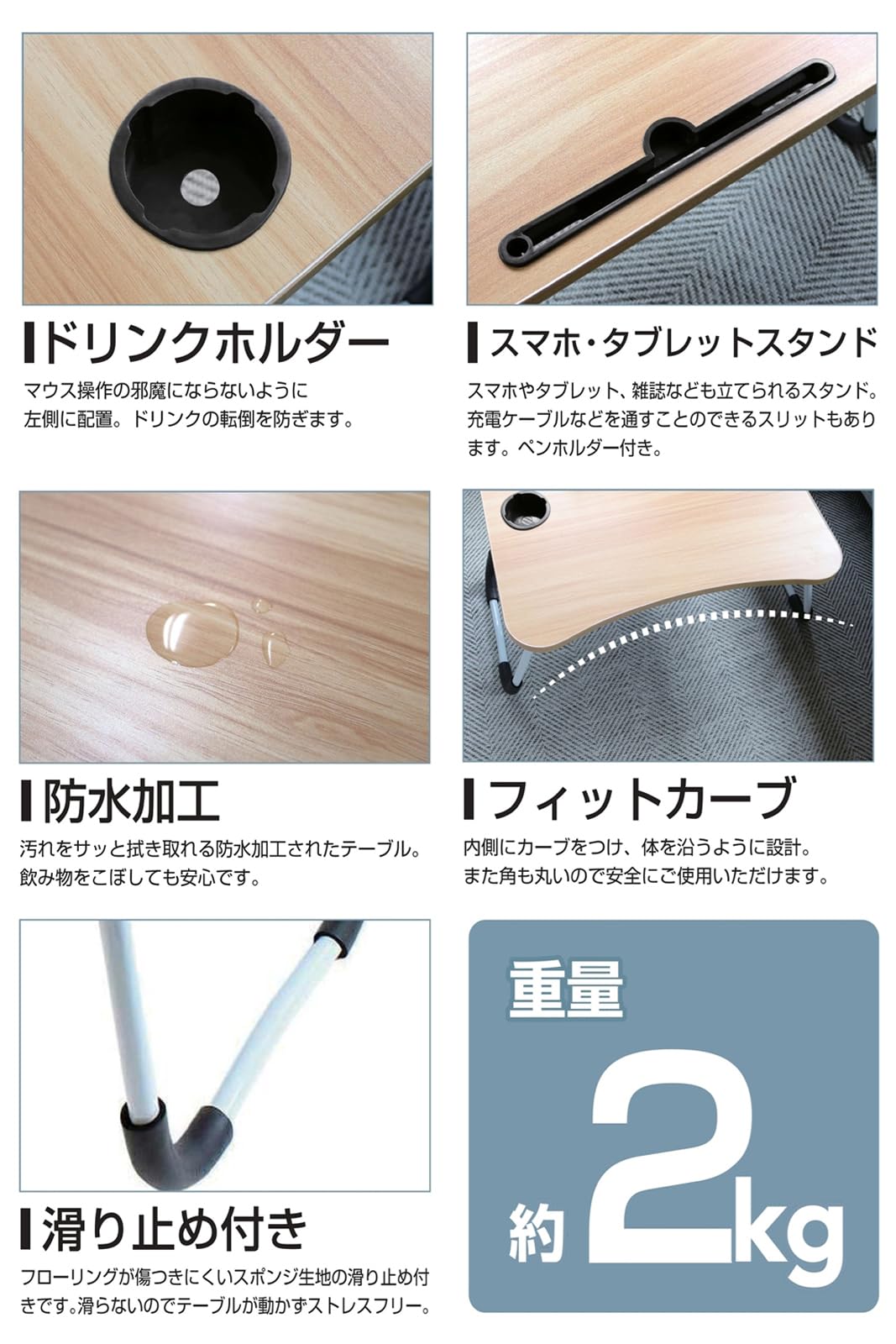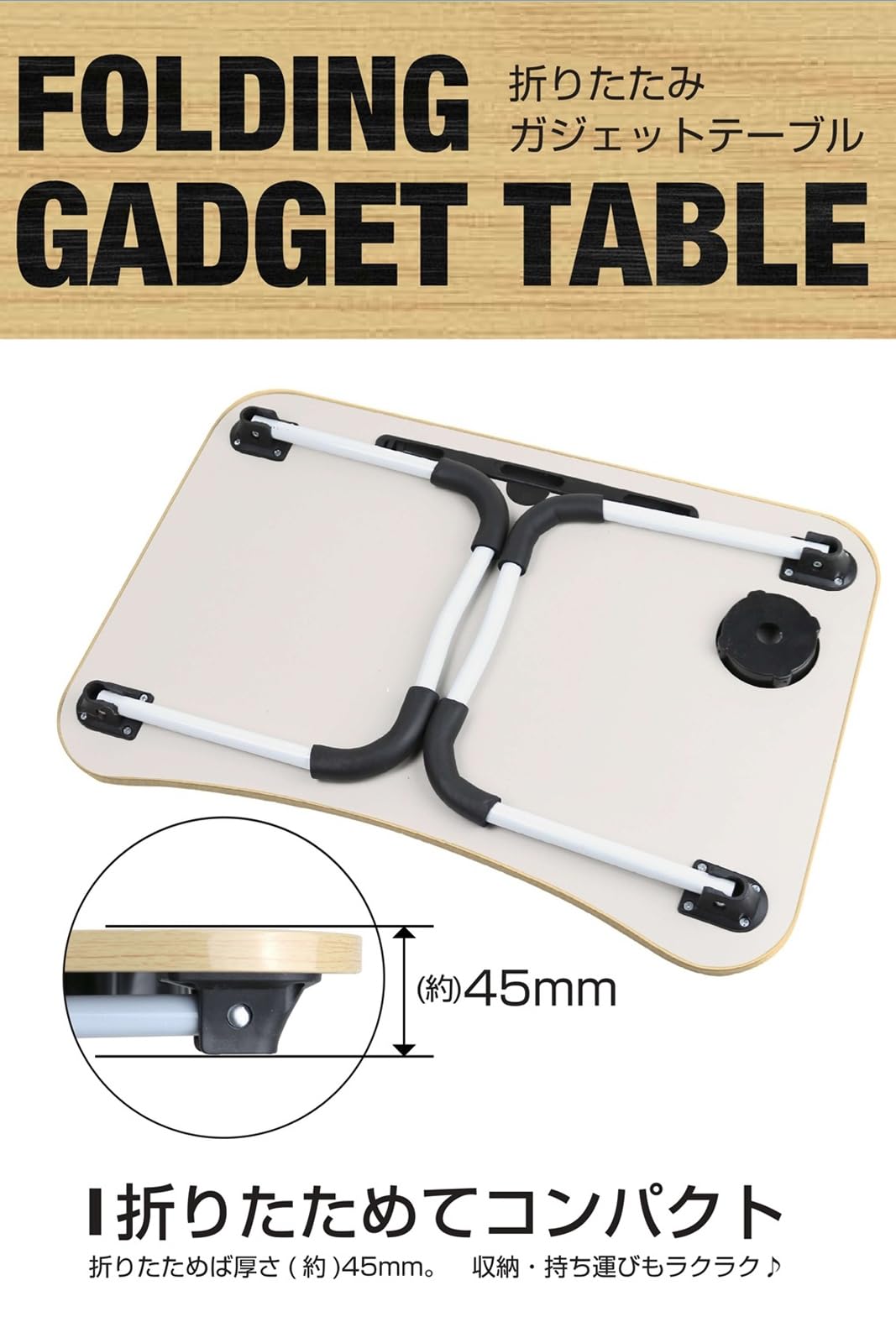 ●コンパクト収納・耐荷重 約10kg・軽量 約2kg、折り畳みガジェットテーブル