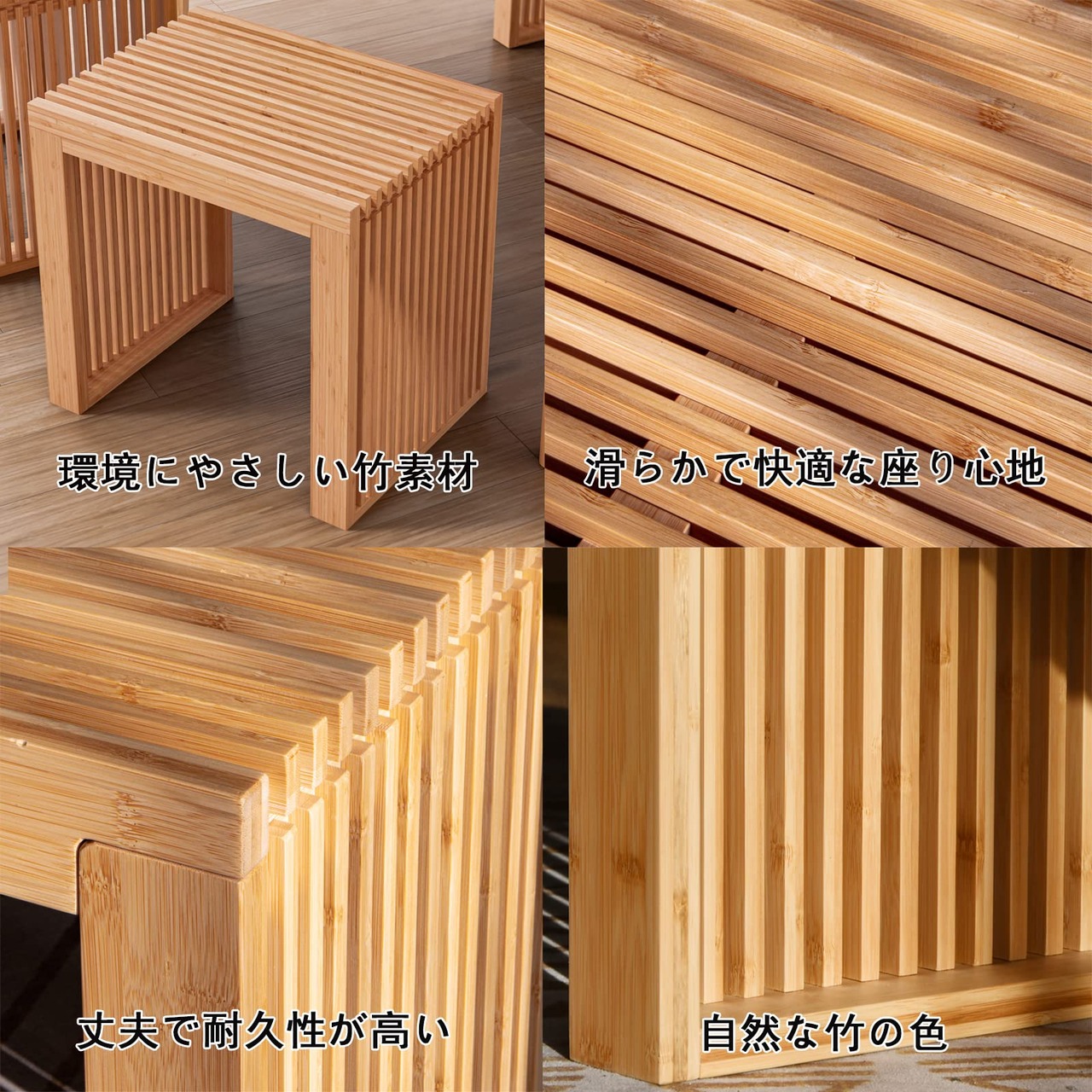 竹製ベンチ 小さい ダイニングベンチ 天然竹材 パークベンチ 玄関ベンチ 竹製スツール 一人掛け コンパクト グリッド形 居間 ベッドルーム 食堂 公園 オフィス 庭園 45x33x43cm
