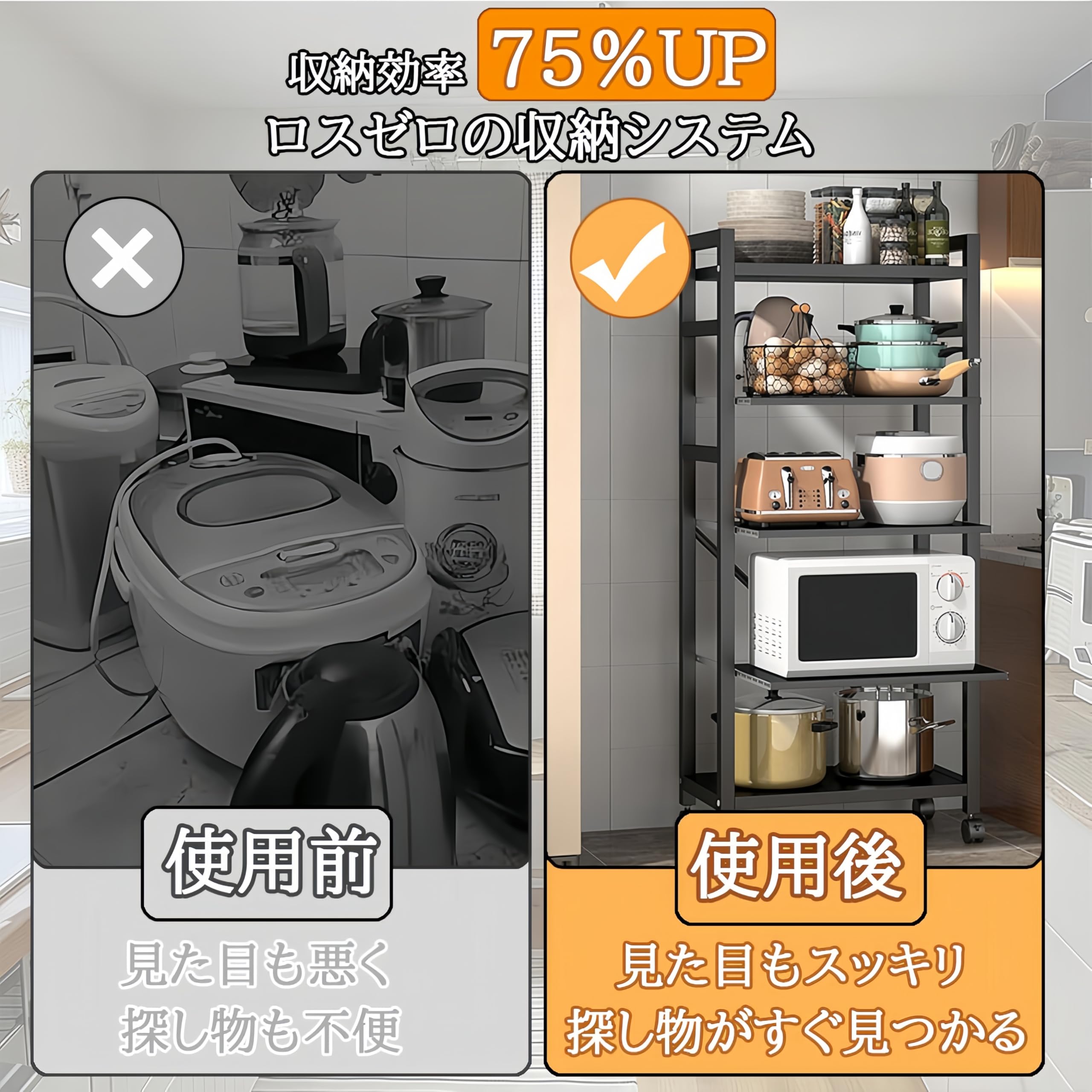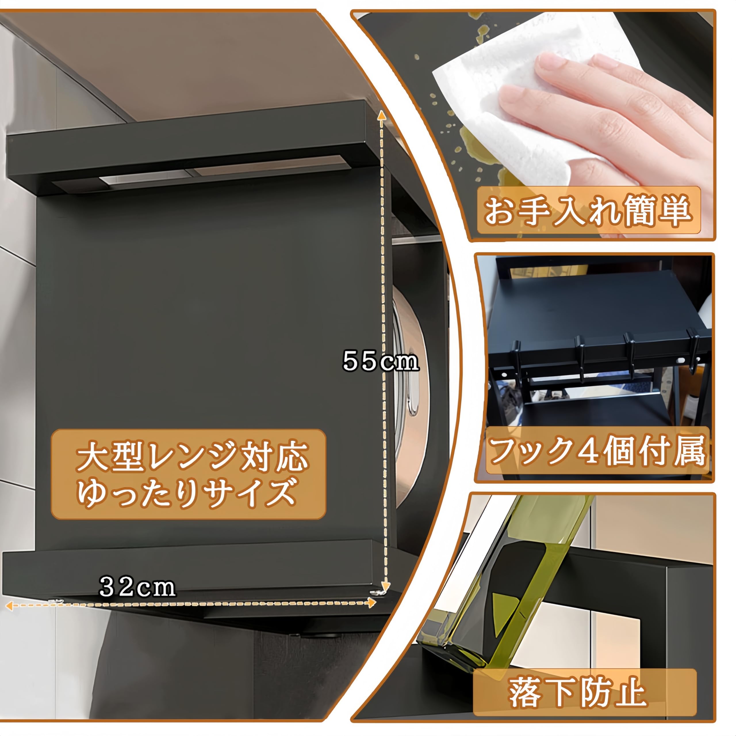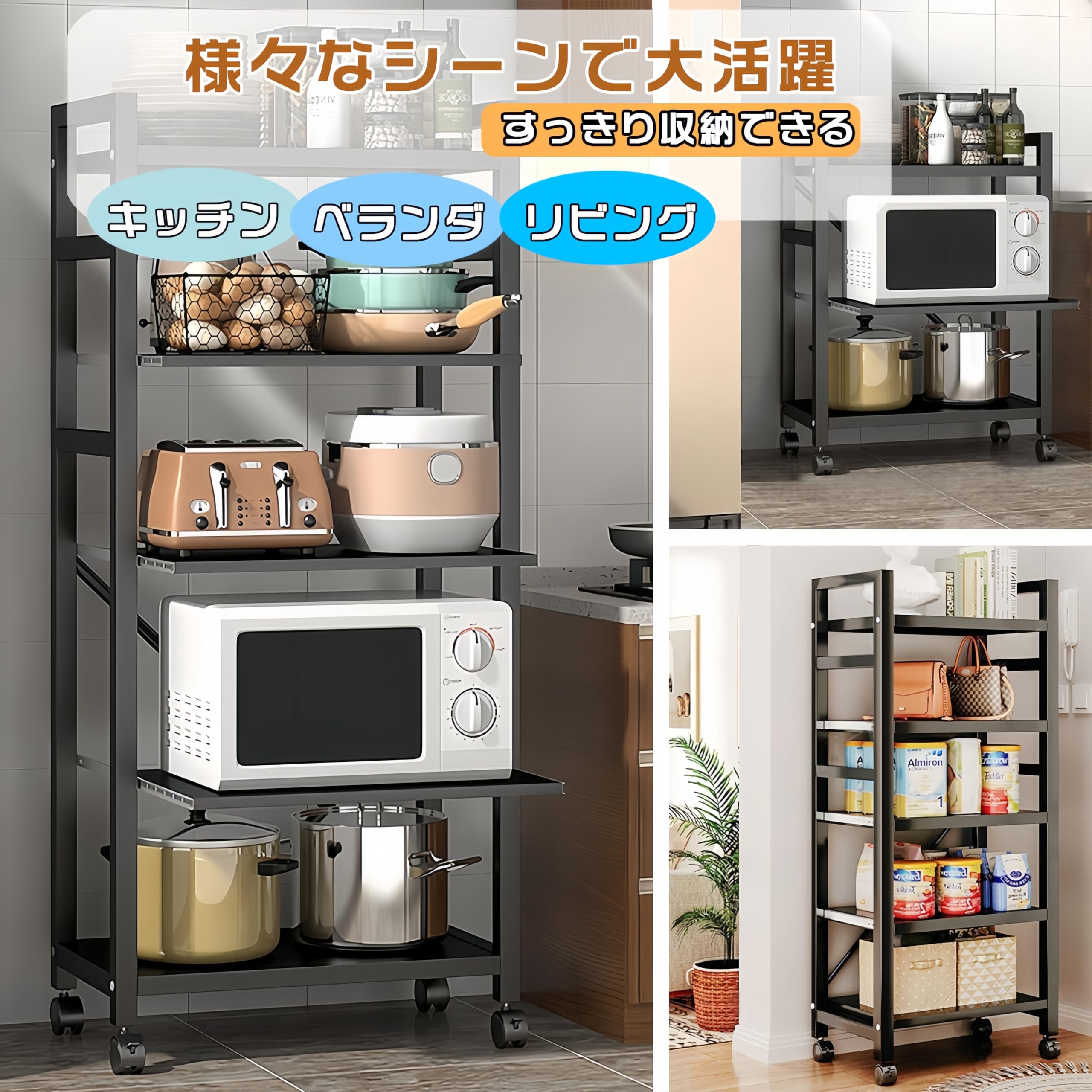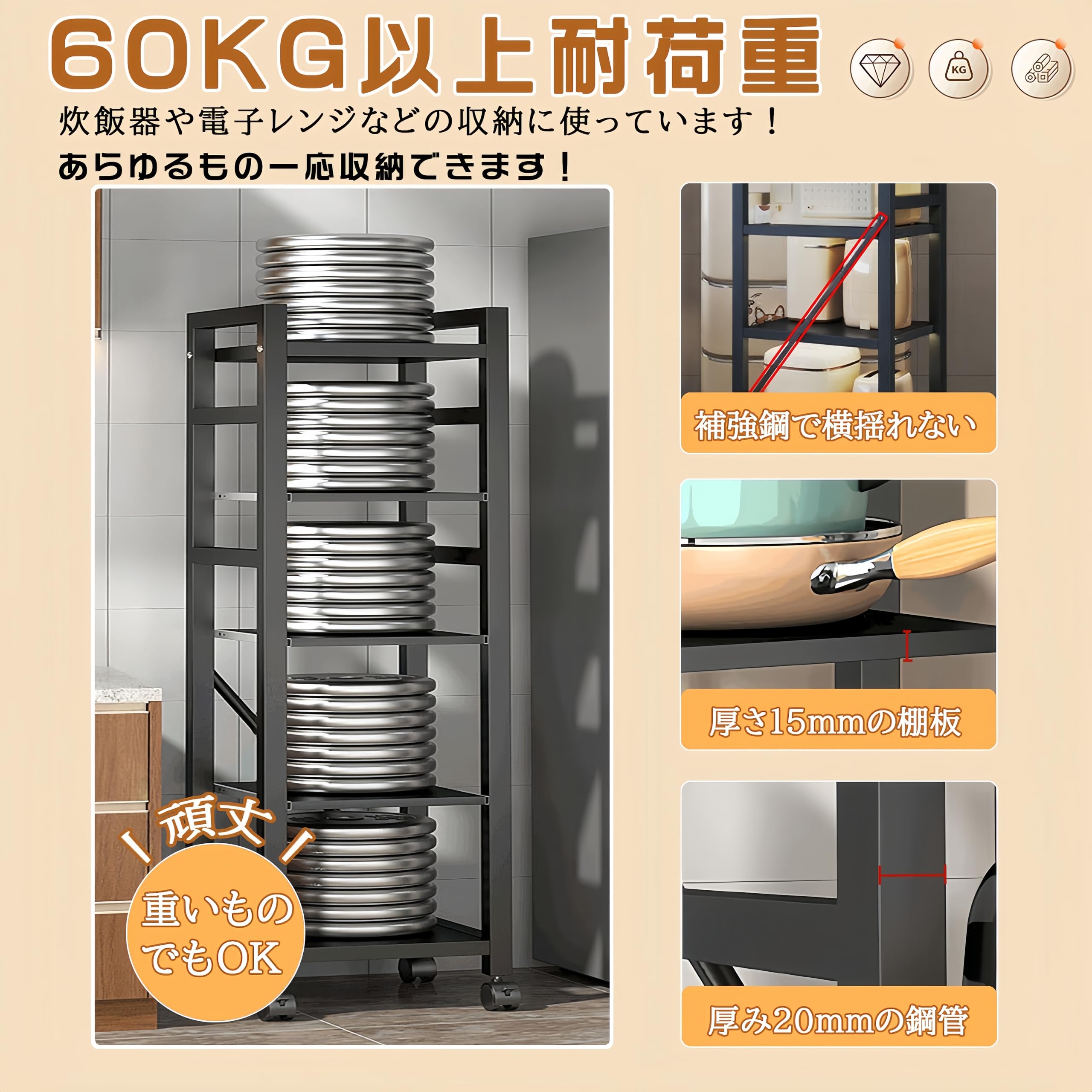 レンジラック レンジ台 大型レンジ対応 スライド棚 高さ130cm 幅55cm キッチンラック キャスター付き オープンラック スリム おしゃれ 落下防止 省スペース 頑丈 耐摩耗性 防水性