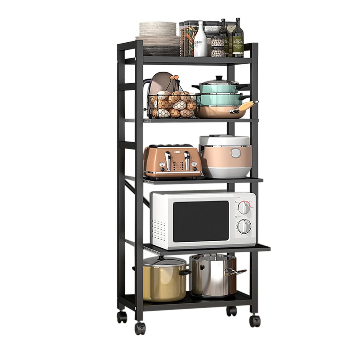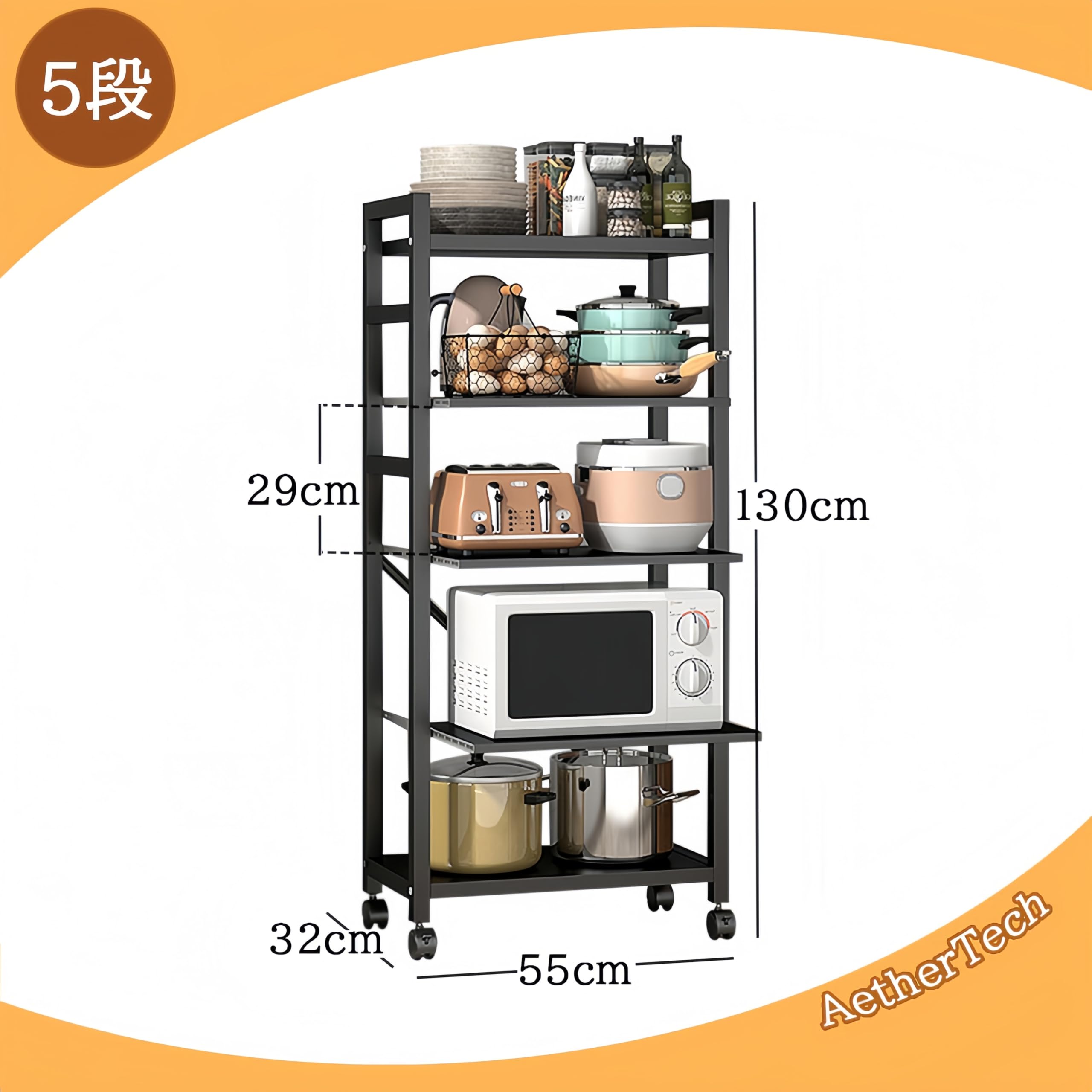 【人気】レンジラック レンジ台 大型レンジ対応 スライド棚 高さ130cm 幅55cm キッチンラック キャスター付き オープンラック スリム おしゃれ 落下防止 省スペース 頑丈 耐摩耗性 防水性 | GIGATERA