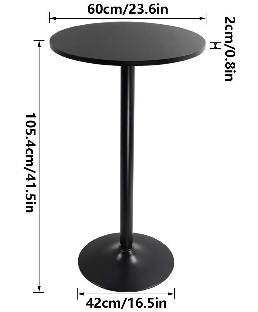 KKTONER 丸バーテーブル カフェテーブル カウンターテーブル 食卓パブテーブル 机 デスク ブラック (黒)
