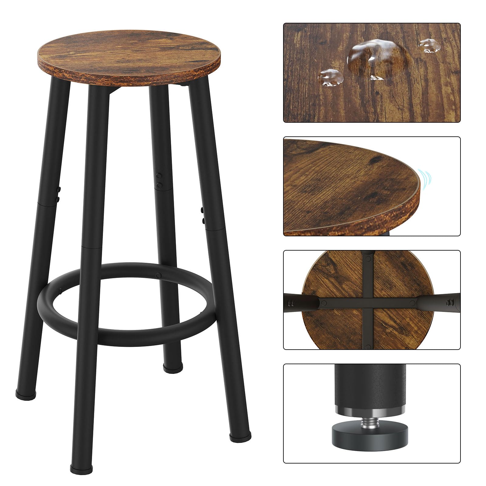 【新着】YMYNYバースツール2脚セット、フットレスト付きキッチンスツール、ブレックファストバースツール、ラウンドバーチェア、ダイニングルーム、キッチン、バー、パーティー用64CM高さスツール、ラスティックブラウン30×30×64CM JPHBS512H
