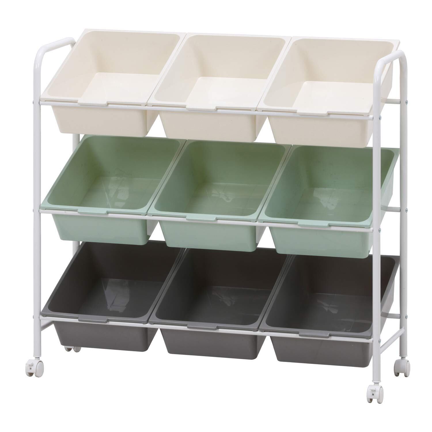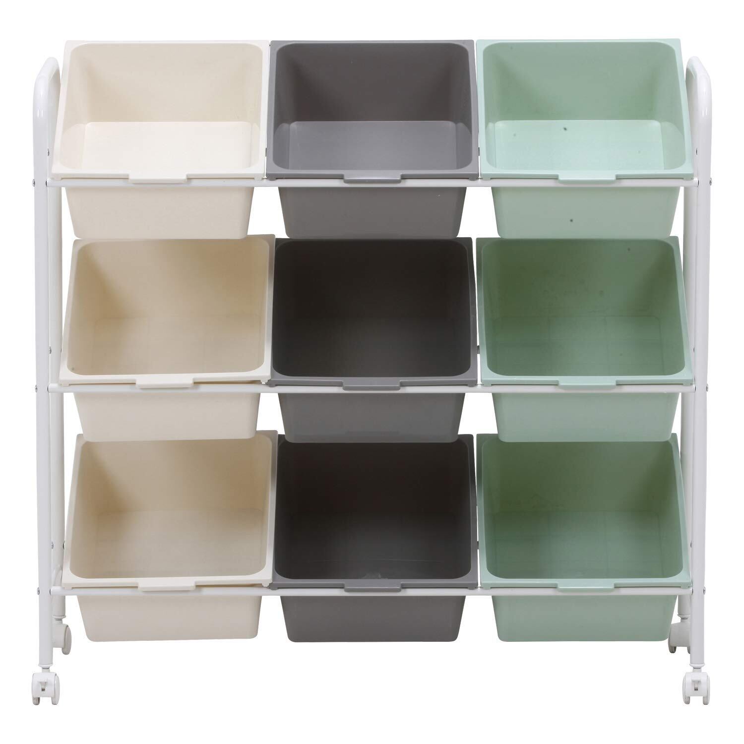 不二貿易 お片付けラック 子供 知育 おもちゃ収納 幅90.5×奥行36×高さ86cm 9マス グリーン おもちゃ箱 収納棚 軽量 ストッパー付き 38293
