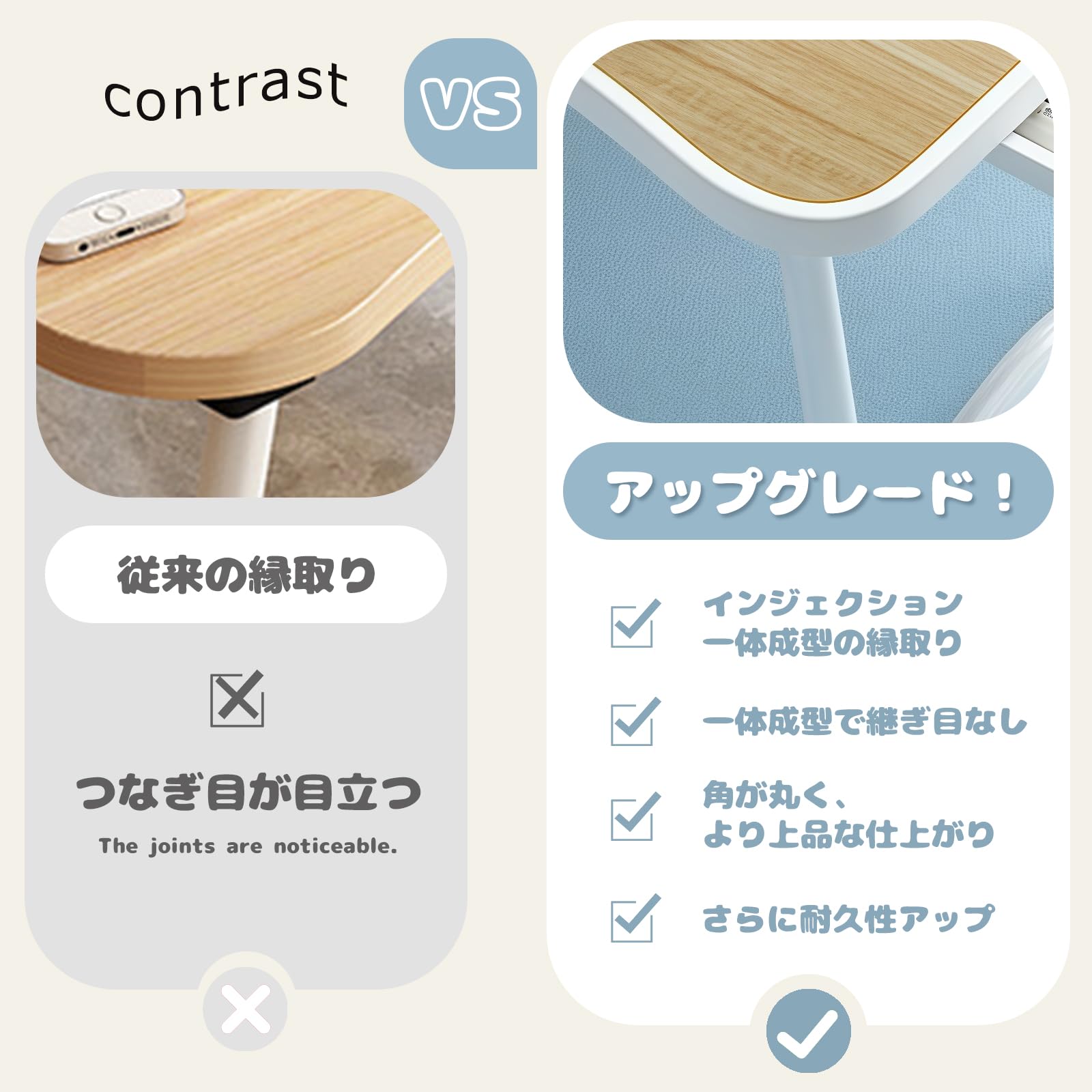 2.高品質素材 | 傷つきにくく、長く使える耐久性:毎日使う子供用机 折り畳みだからこそ、耐傷・耐水加工の天板を採用。クレヨンや鉛筆の跡もサッと拭くだけでキレイに!頑丈なスチールフレームで長期間の使用でも歪みにくく、机 折り畳み 軽量 ローテーブルとしても優秀です。日本の安全基準クリアの無毒素材を使用し、お子さまの健康も守ります。