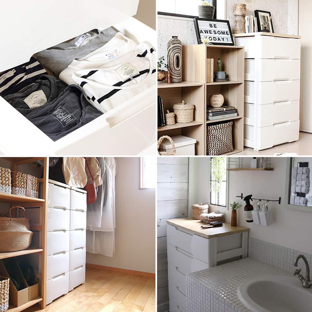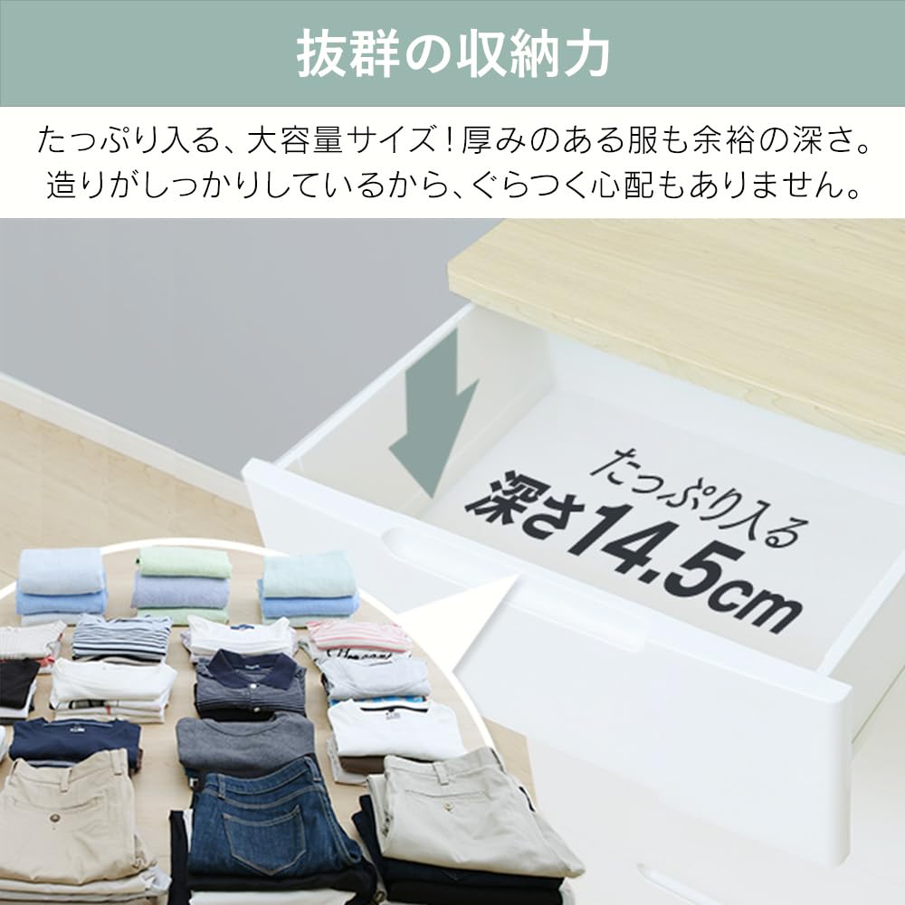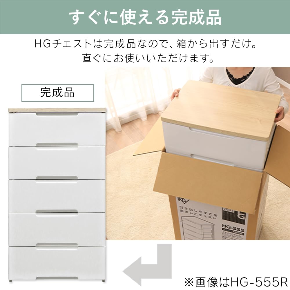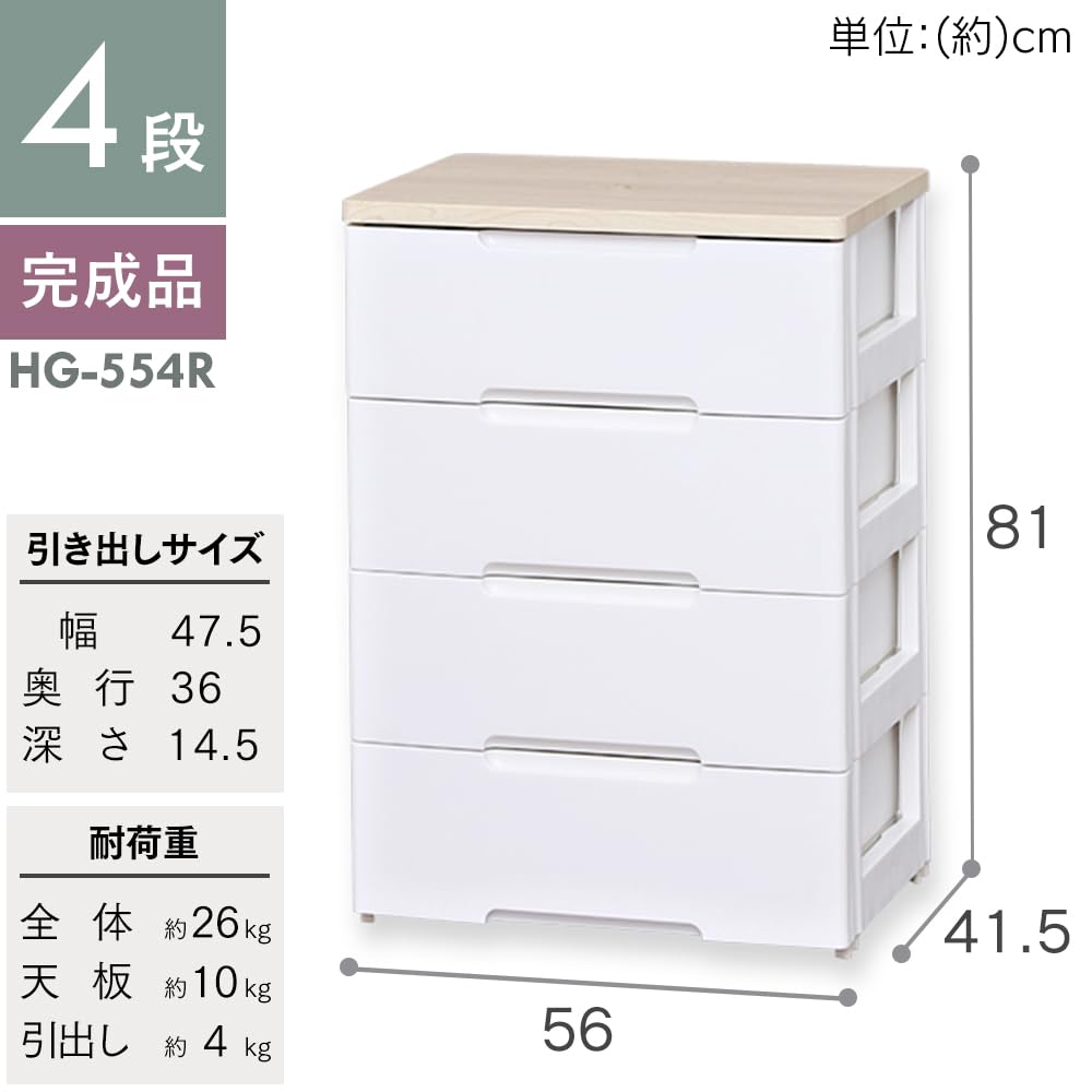 アイリスオーヤマ チェスト 4段 届いてすぐ使える完成品 ラクラク引出し 木天板 日本製 幅56×奥行41.5×高さ81cm ホワイト / ナチュラル 白 プラスチック HG-554R 組立不要