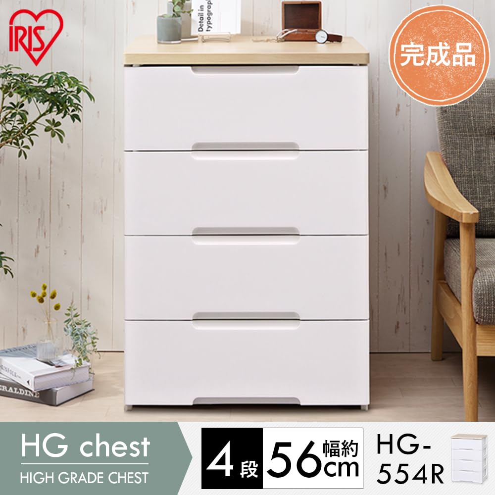 【在庫処分】アイリスオーヤマ チェスト 4段 届いてすぐ使える完成品 ラクラク引出し 木天板 日本製 幅56×奥行41.5×高さ81cm ホワイト / ナチュラル 白 プラスチック HG-554R 組立不要