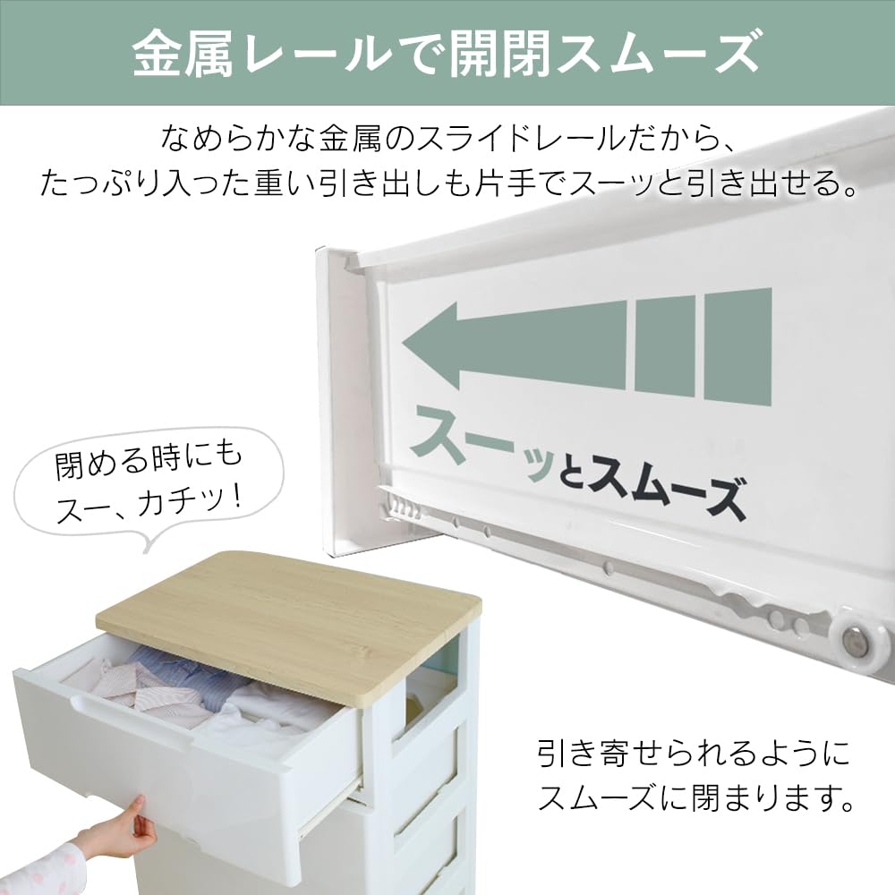 【引き出しスムーズ】金属製のスライドレールでなめらかに動く。 たくさん収納しても軽い力でラクラク開閉。