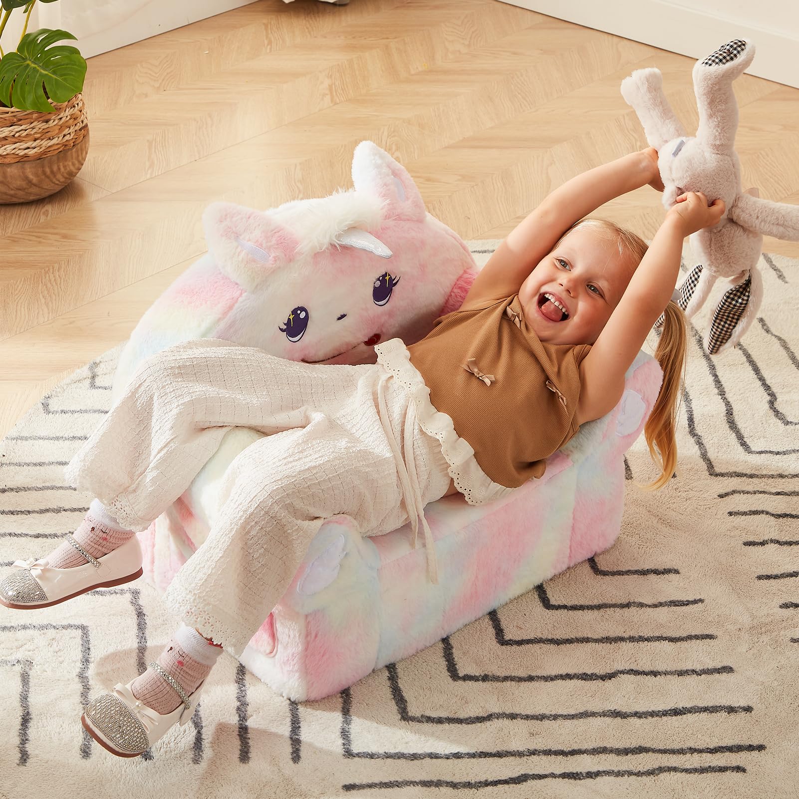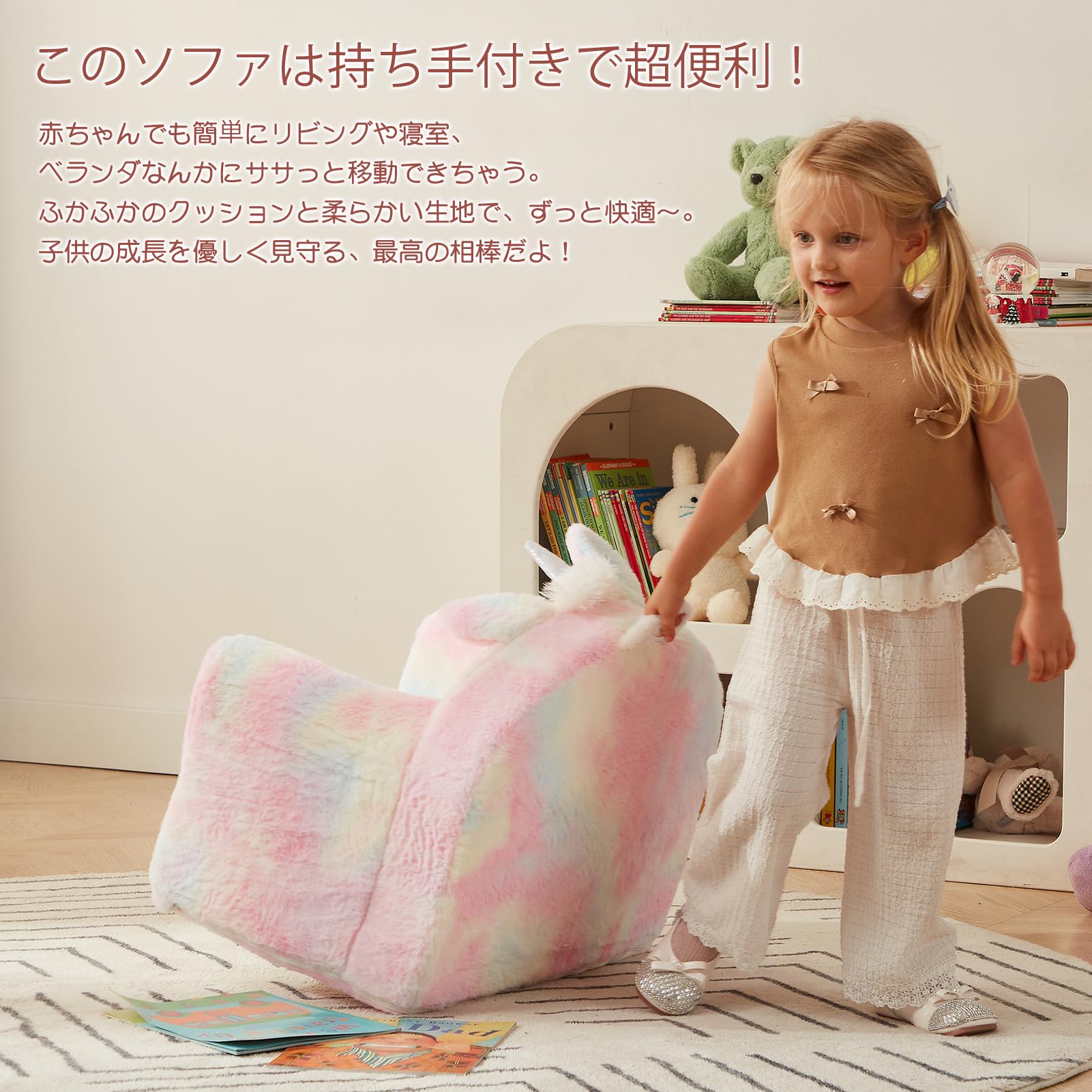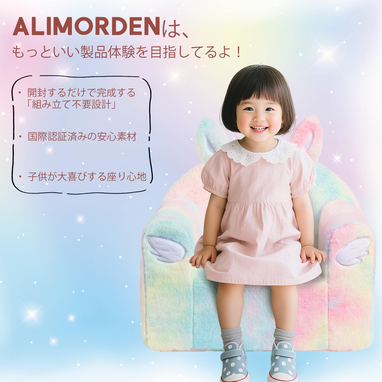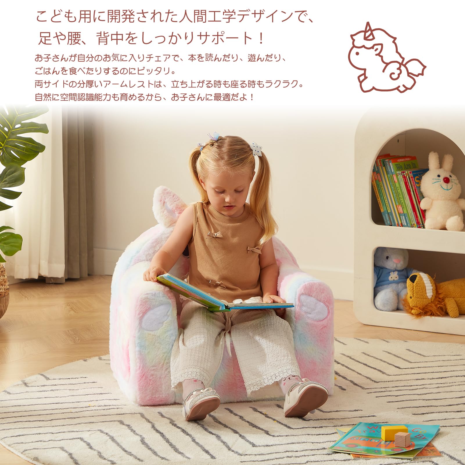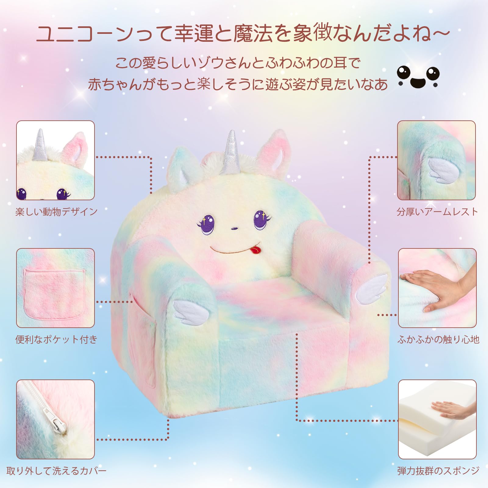 ALIMORDEN キッズソファ 子供用ソファー ベビーチェア 赤ちゃん座椅子 座れるぬいぐるみ コンパクト ふわふわ 背もたれ付き プレゼント 動物 ユニコーン