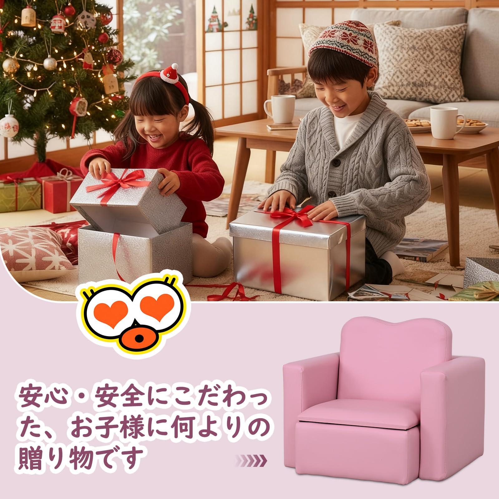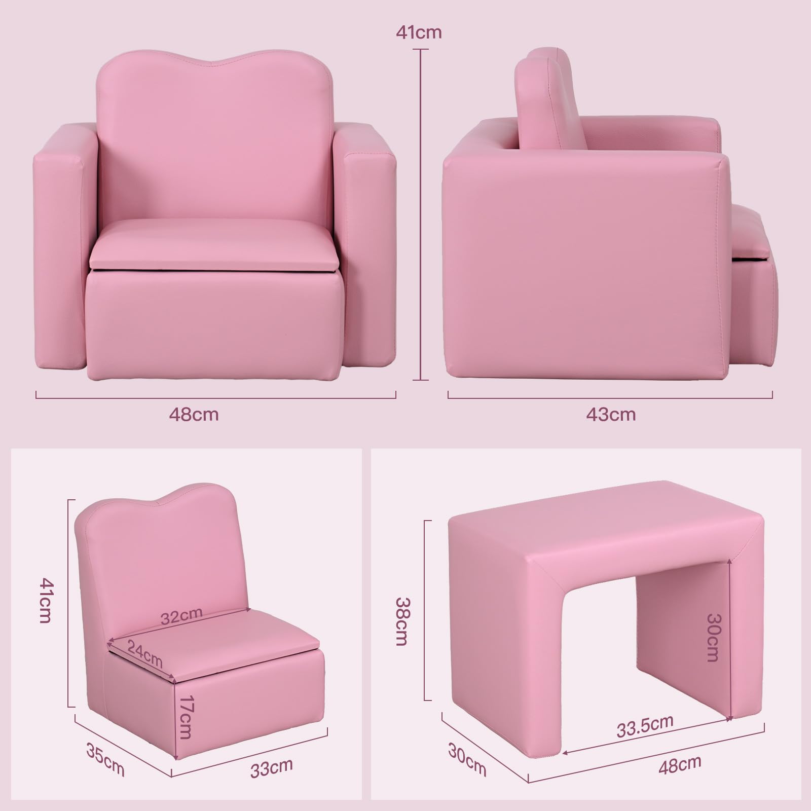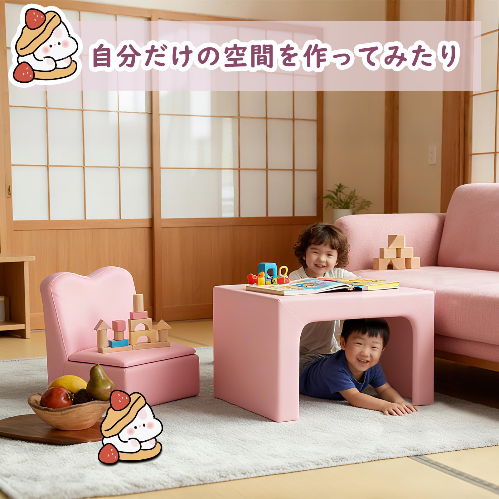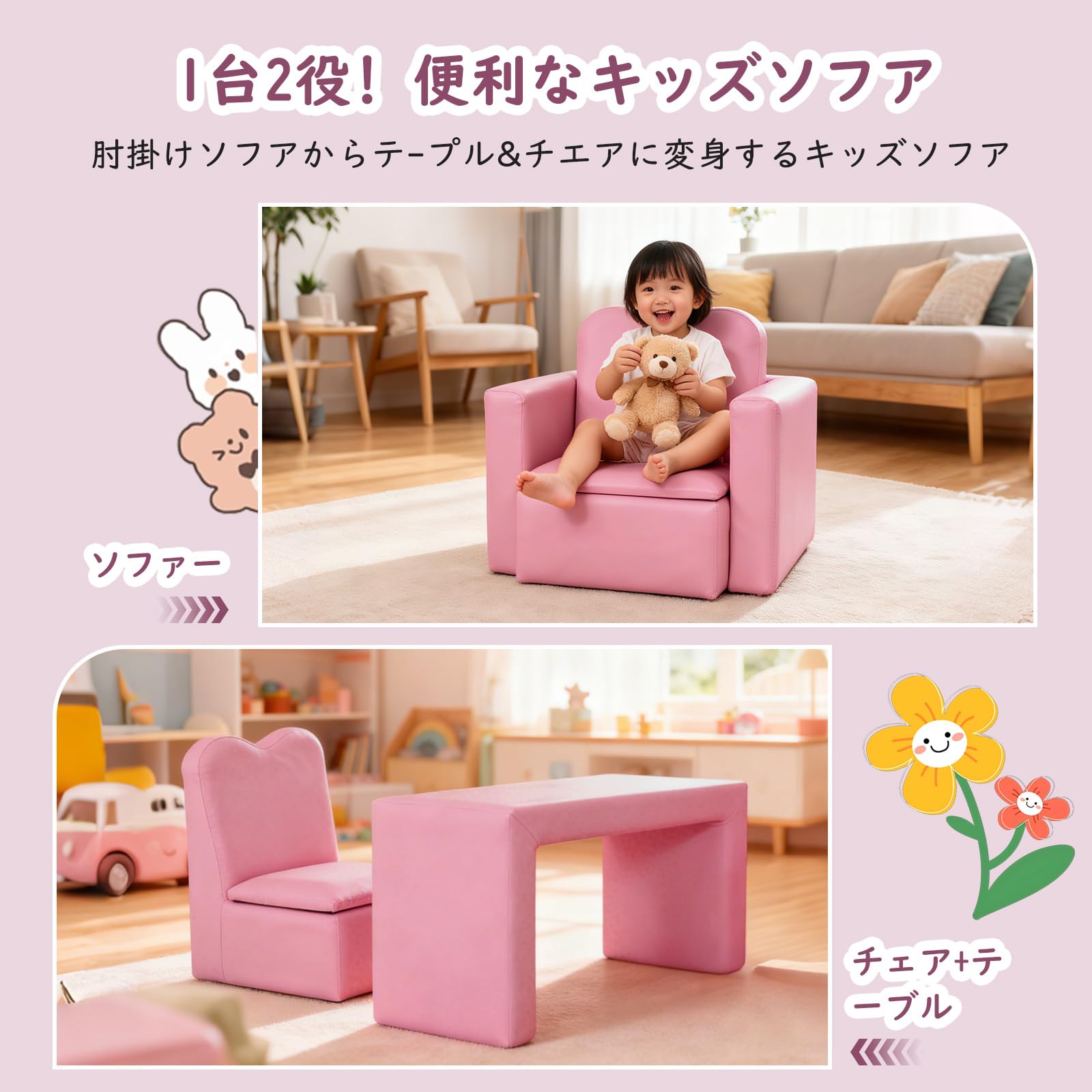 IKIFLY キッズ ソファ 子供用ソファーテーブル セット選べるカラー 肘掛けがテーブルになるソファ 組立不要 多機能 一人掛け 子ども用 チェア キッズルーム 子供部屋 リビング (ピンク)