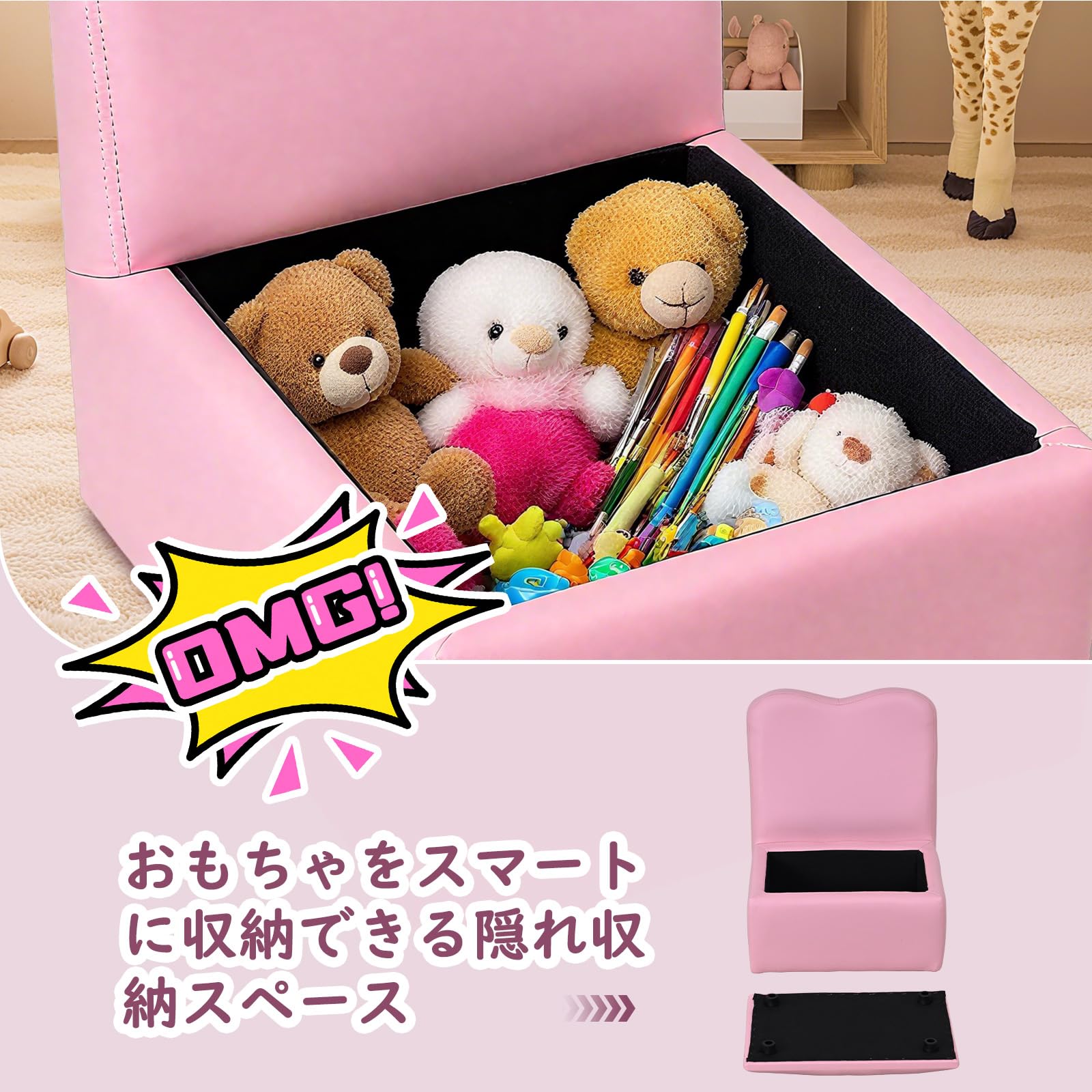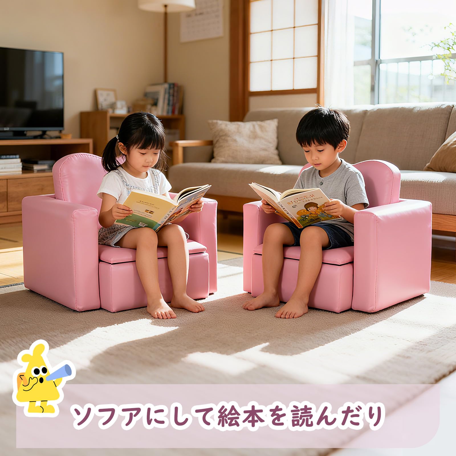 【新着】IKIFLY キッズ ソファ 子供用ソファーテーブル セット選べるカラー 肘掛けがテーブルになるソファ 組立不要 多機能 一人掛け 子ども用 チェア キッズルーム 子供部屋 リビング (ピンク) | GIGATERA