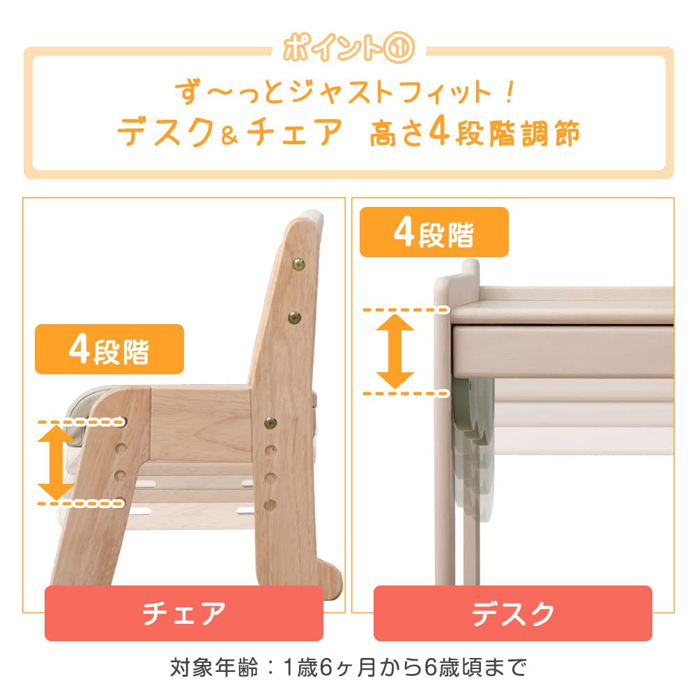 タンスのゲン 現役ママが考えた キッズデスク チェア 2点セット 高さ調整 1人掛け 4段 木製 ナチュラル×アイボリー 49600907(90174)