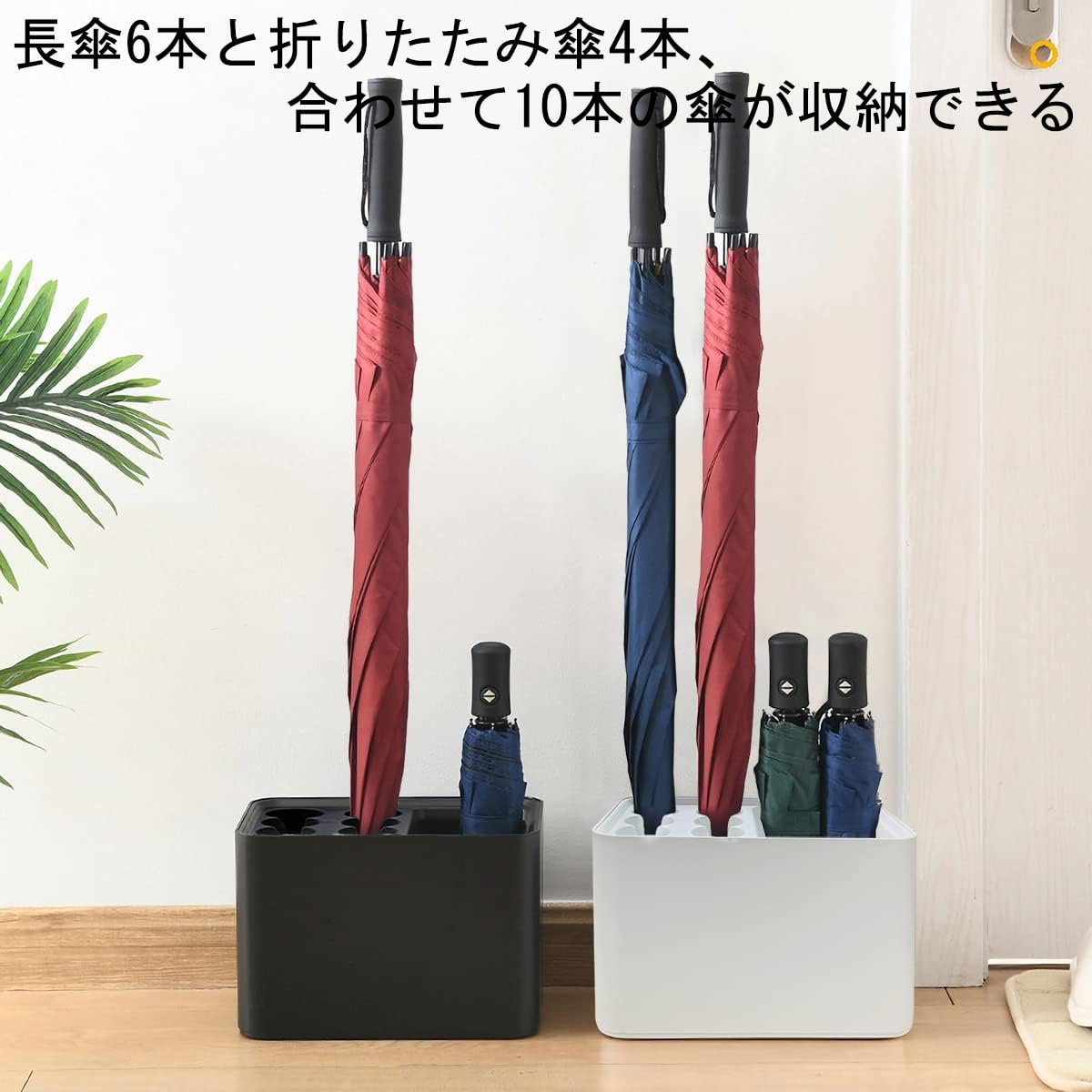 【10本収納】長傘6本と折りたたみ傘4本、合わせて10本の傘が収納できるコンパクトな傘立てです。一人住まいにも家族住まいにもおすすめです。