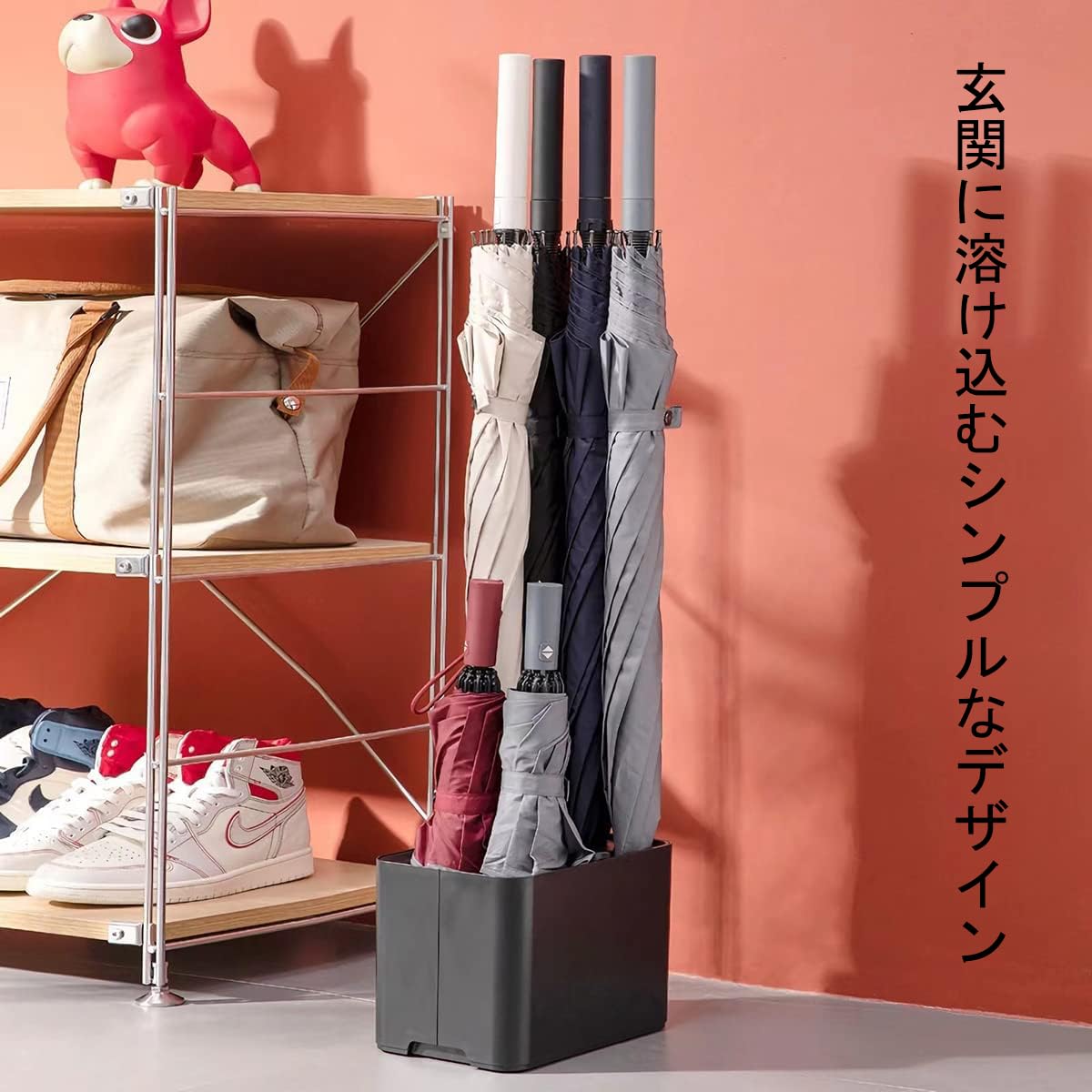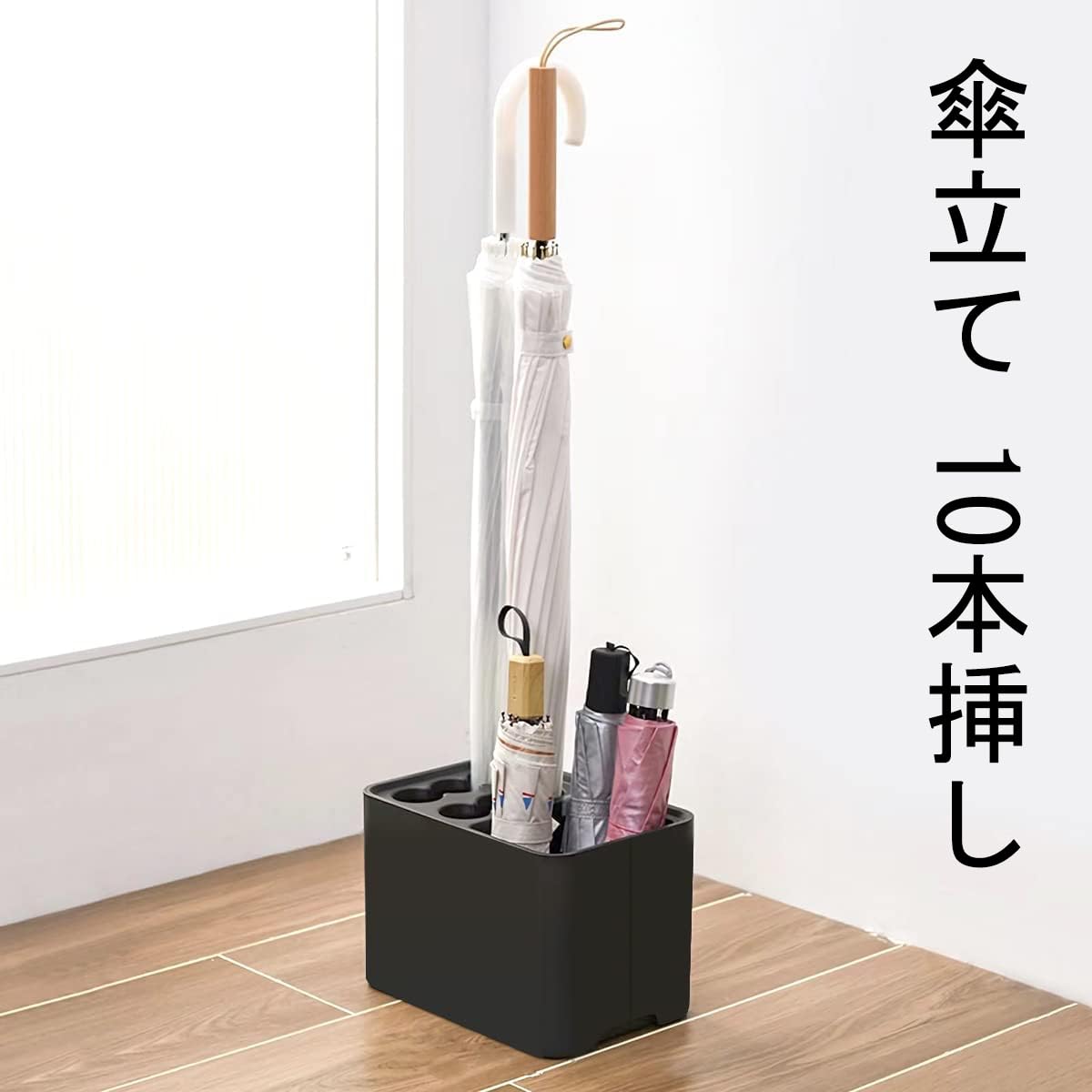 傘立て 10本挿し アンブレラスタンド 傘入れ 傘収納 水受け皿着脱可能 コンパクト 玄関収納 屋内用 (ブラック)