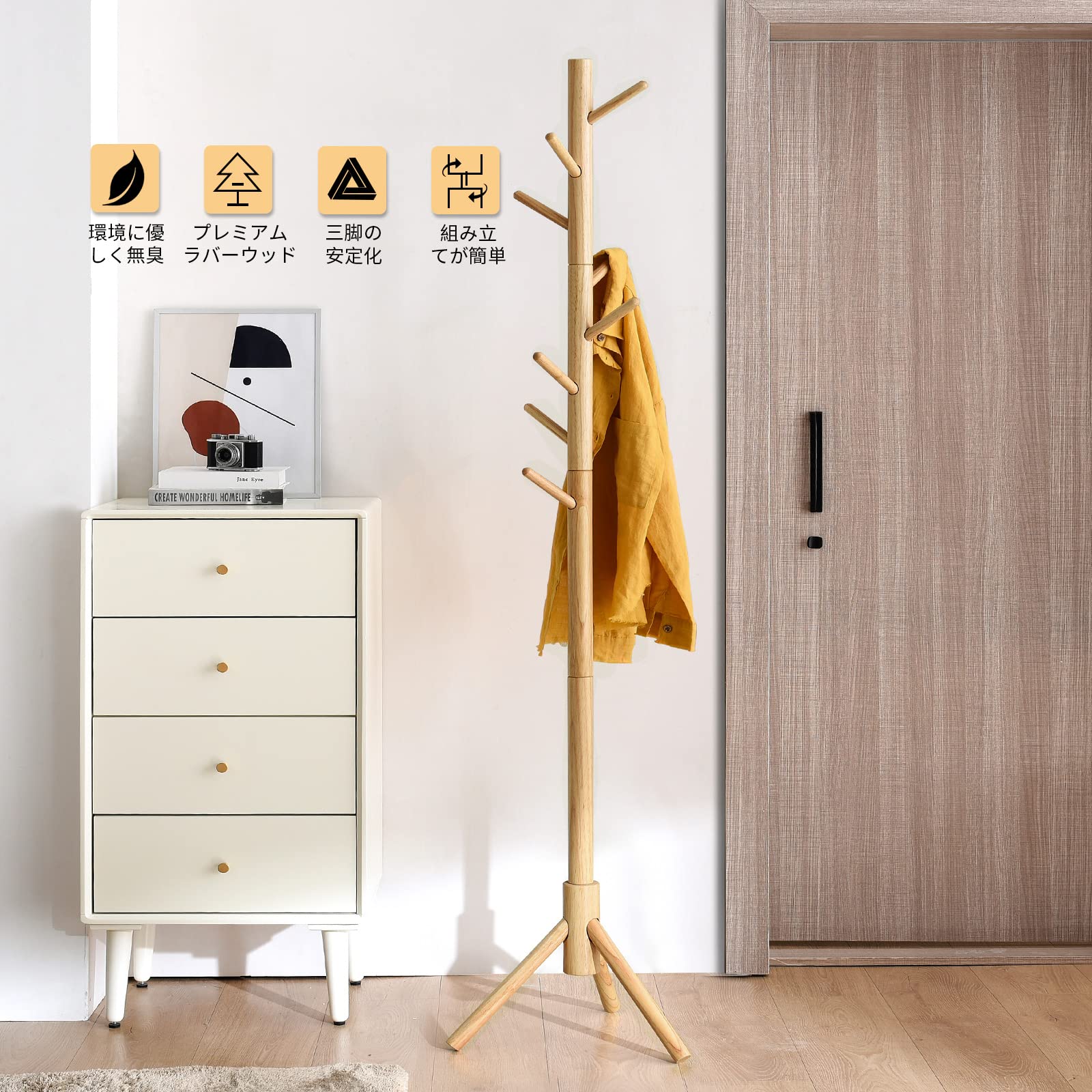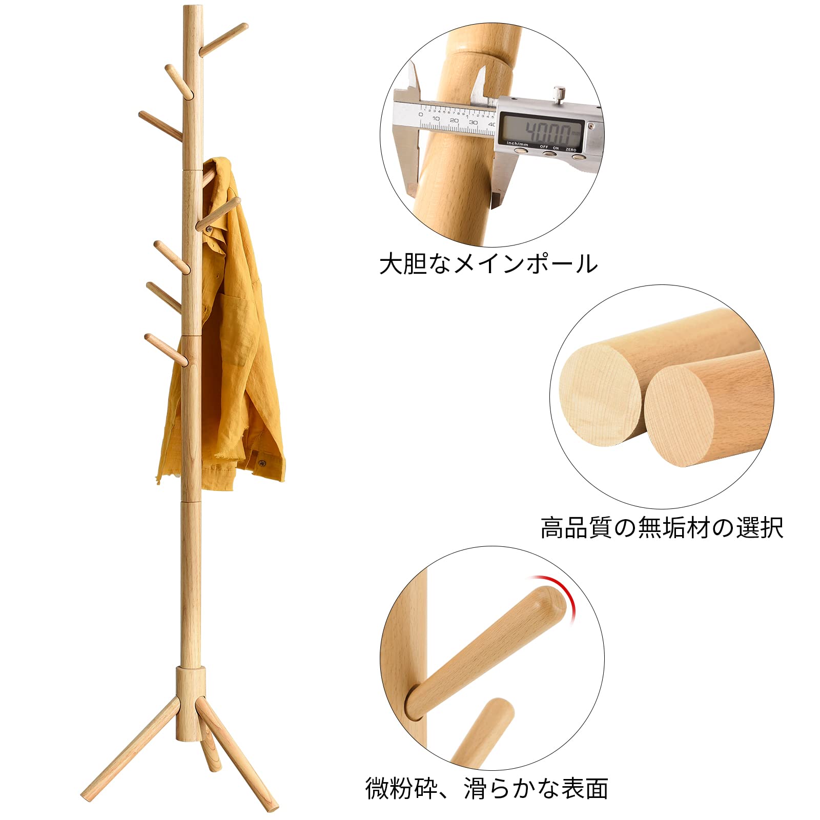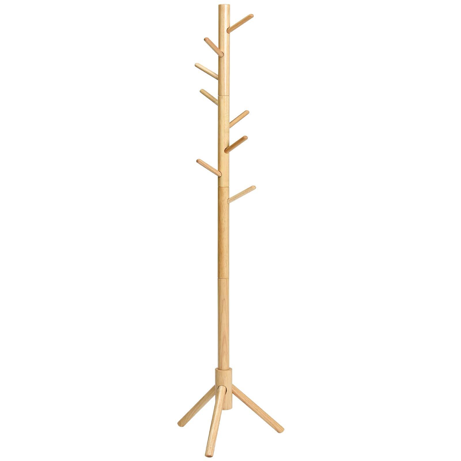 【新着】IBUYKE ポールハンガー コートラック コートハンガー ハンガーラック ポールハンガー 自立型 玄関ホールツリーコートツリー 8フック付き 調節可能 木製 家庭用 オフィス用 衣類 スカーフ ハンドバッグ ナチュラル JPRF-1193 | GIGATERA