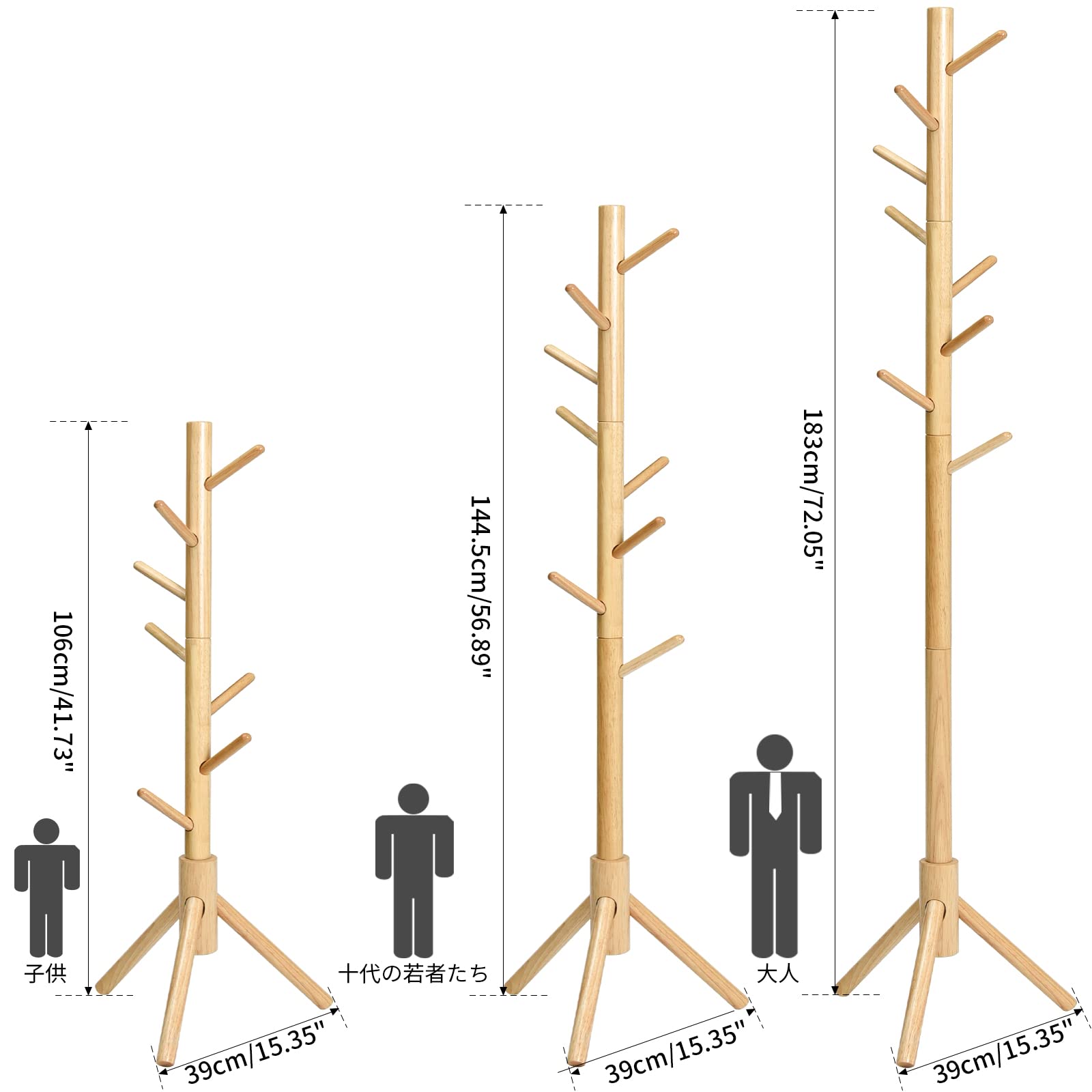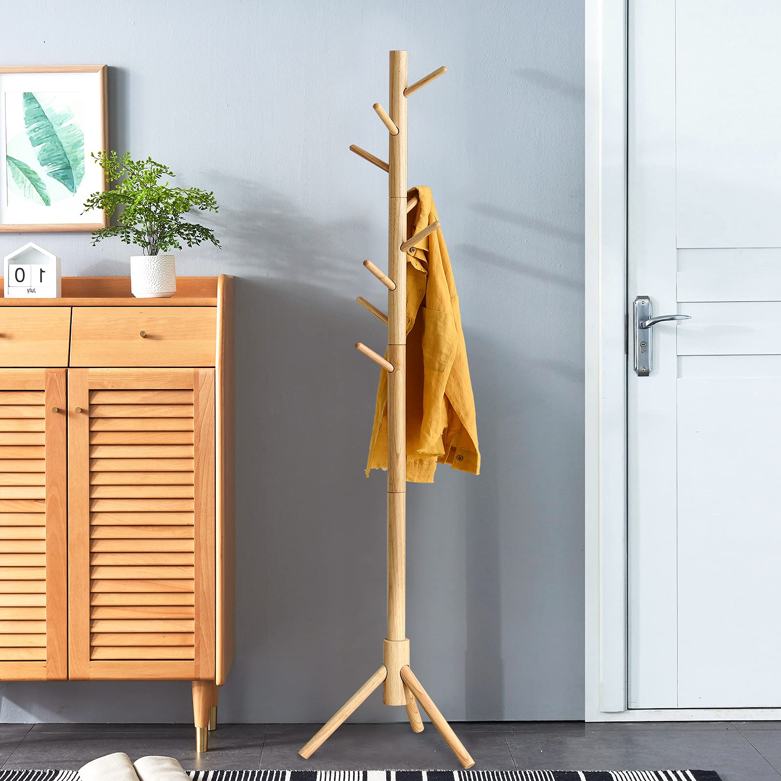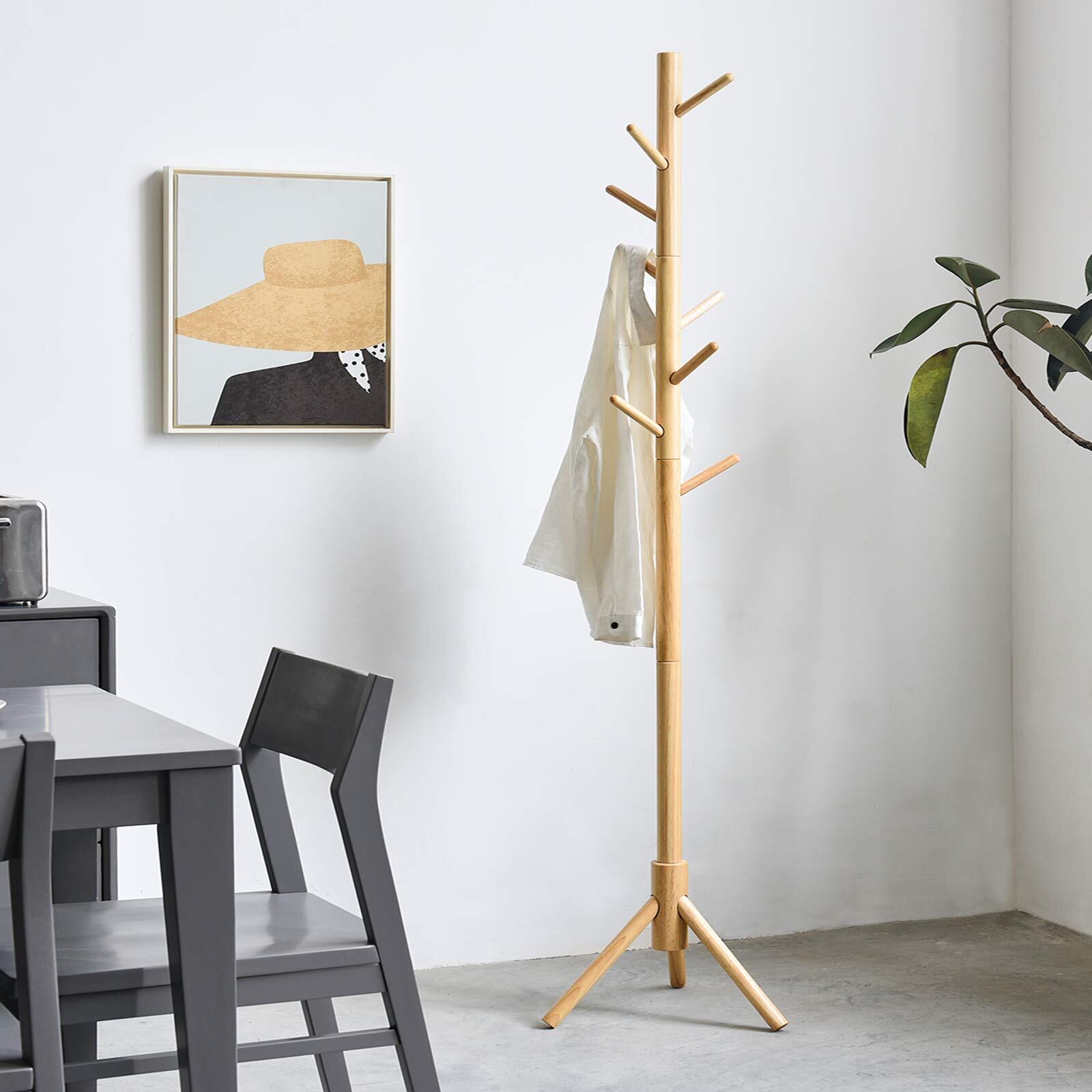 【新着】IBUYKE ポールハンガー コートラック コートハンガー ハンガーラック ポールハンガー 自立型 玄関ホールツリーコートツリー 8フック付き 調節可能 木製 家庭用 オフィス用 衣類 スカーフ ハンドバッグ ナチュラル JPRF-1193 | GIGATERA