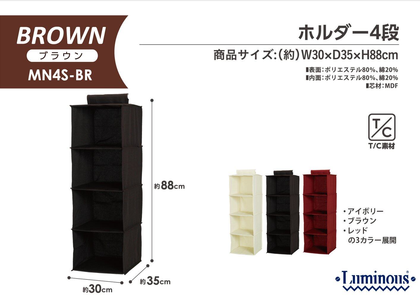 [ドウシシャ]ルミナス 全ポール径共通パーツ 収納性アップ 【ストレージボックス】スチールラック用 ホルダー4段(ブラウン) 幅30×奥行35×高さ88cm MN4S-BR