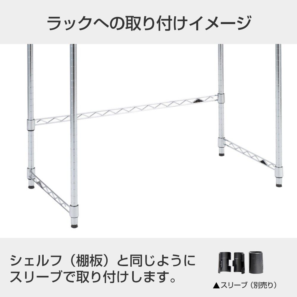 ●補強用途以外にも、フックやバスケットなどのパーツの取付けや、ラックサイドや背面に取付けて、収納物のこぼれや転倒防止にも便利
