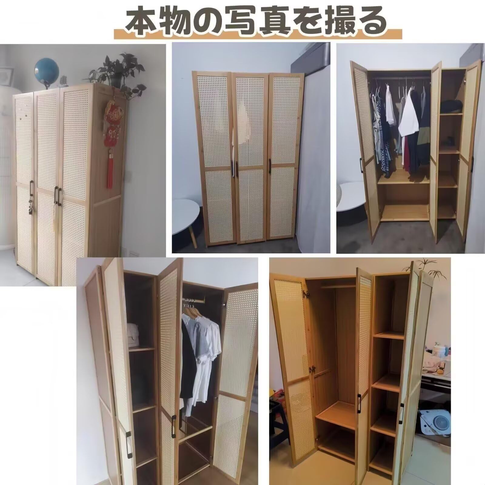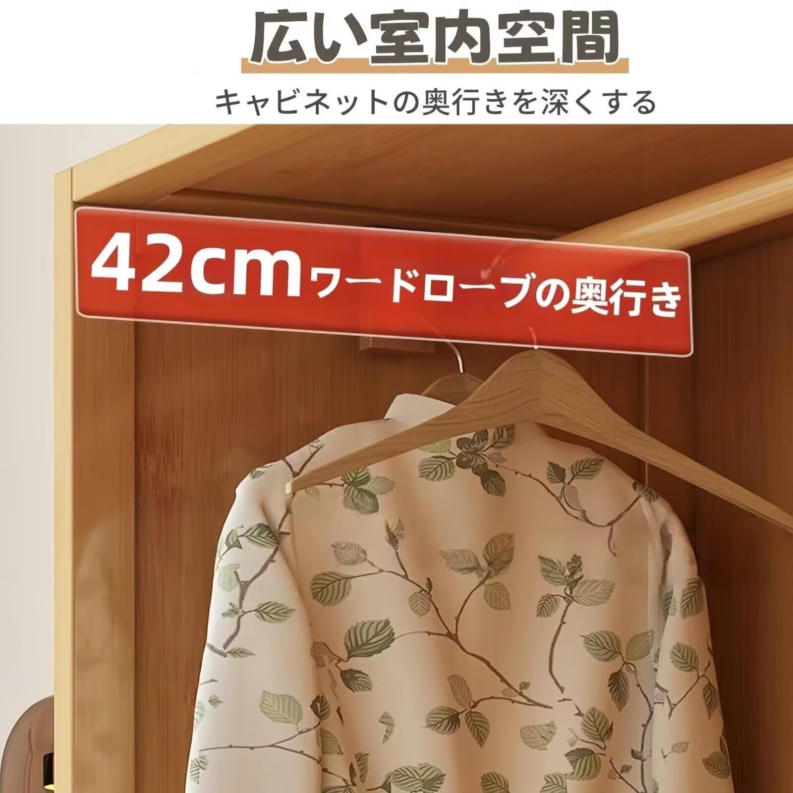 ??【高品質素材】ワードローブの素材は天然竹と密度ボードの組み合わせで、長時間使用しても変形しないように安定して耐久性があります。無ホルムアルデヒド・無臭気なので、ご年配の方や小さなお子様のいるご家庭でも、安心安全にお使い頂けます。ご注意:サイズ測定では1-3cmの誤差があります。予めご了承ください。