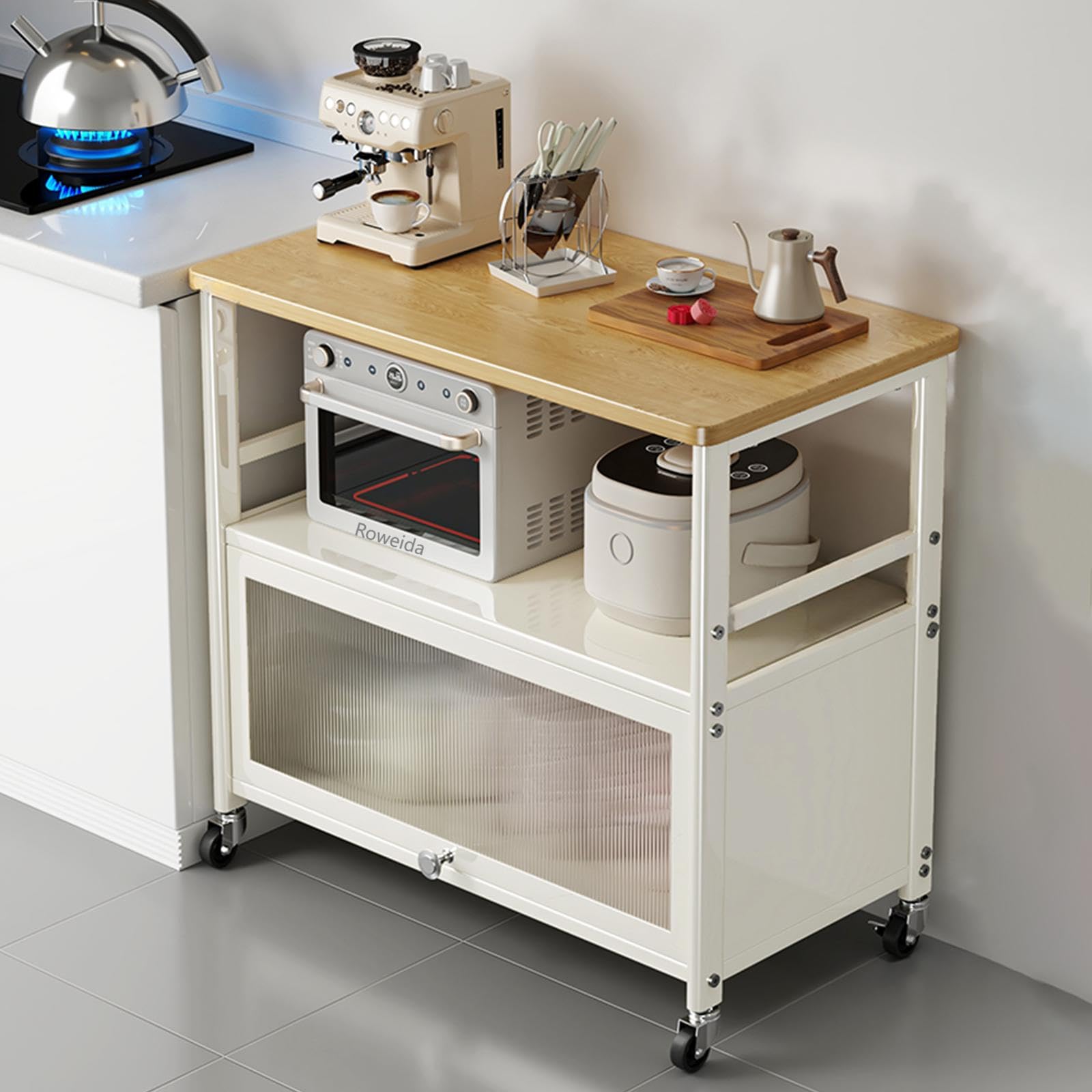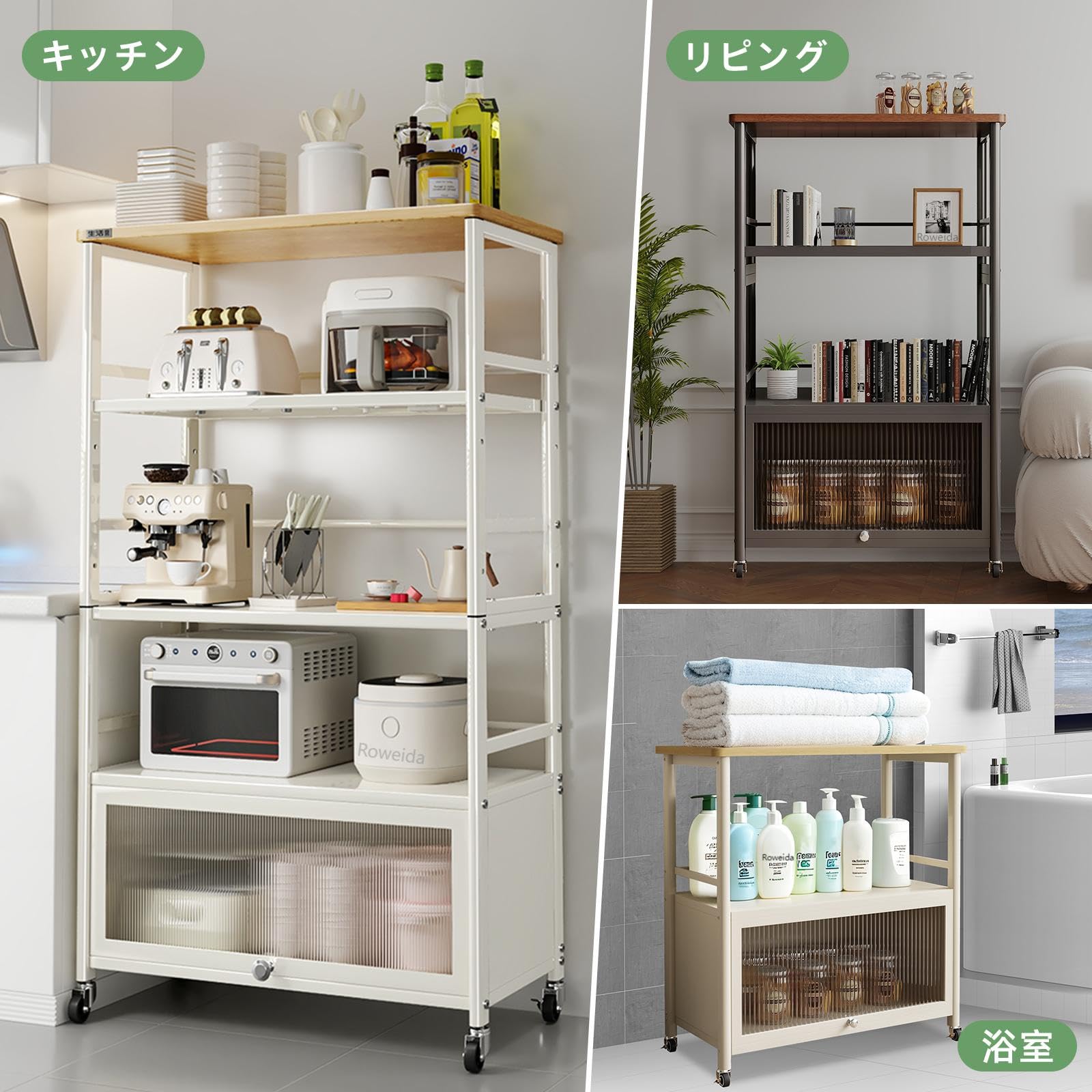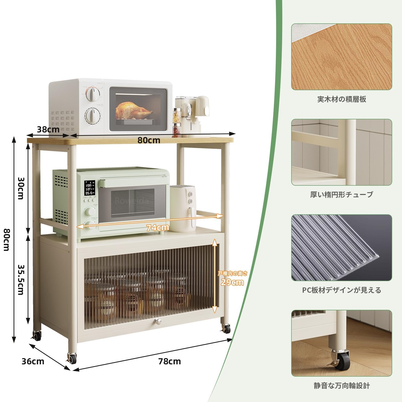 多機能性:最下層の隠し式の上開き扉が備わっており、扉はPC素材を使用しており、光を透過して透視しないです。扉は磁気で固定されるため、物を収納しながらほこりを防止して、あなたの台所をもっときれいにして、戸棚と段棚を自由に切り替えます;天板は木製で、平らで滑らかで、作業台にもなり、サイドテーブルにもなります。