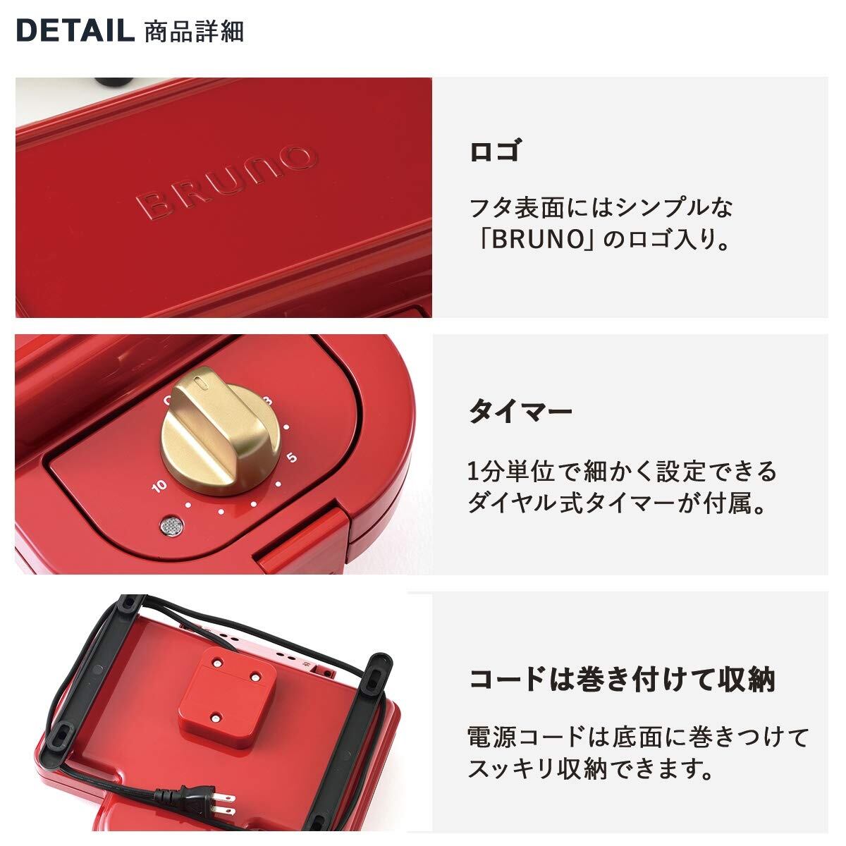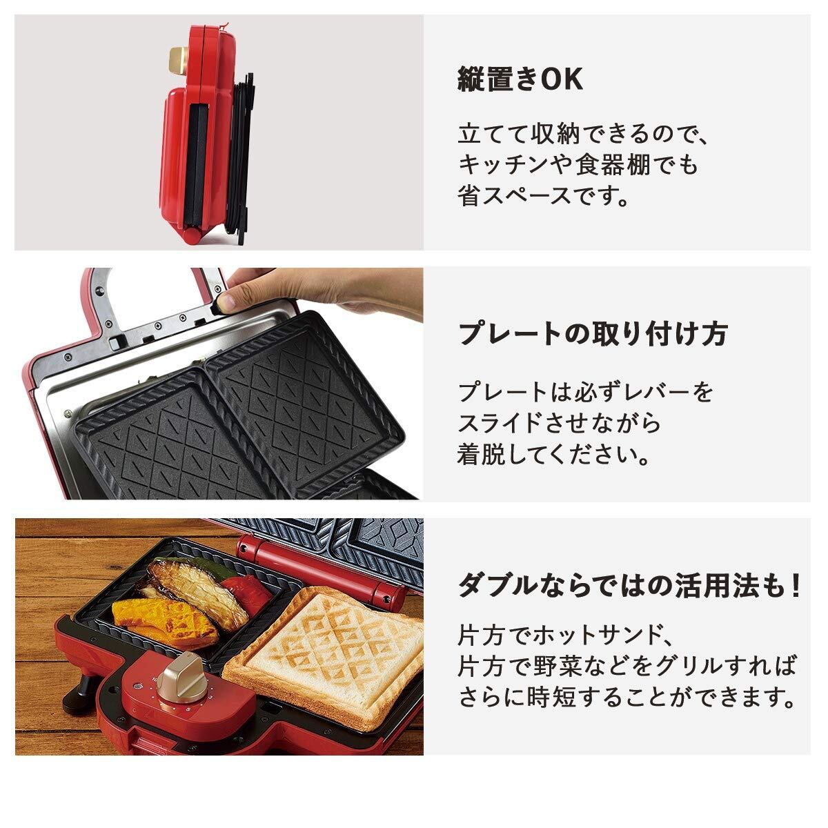 ブルーノ BRUNO ホットサンド 耳まで焼ける 電気 ダブル レッド BOE044-RD