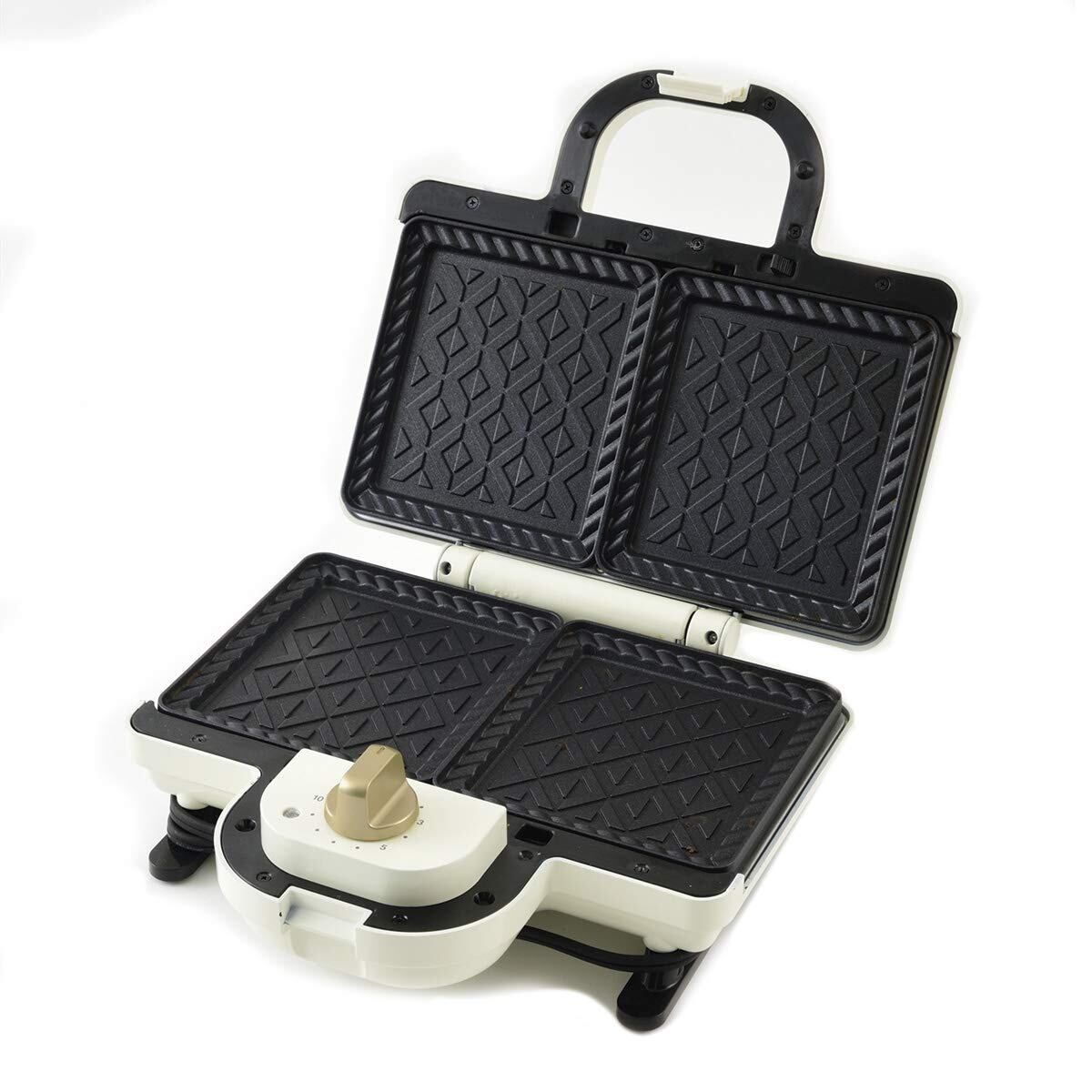タイマーをセットして待つだけ! 耳までカリッとおいしいホットサンドのできあがり。いつもの朝食が華やかに!遊び心のある焼き目のホットサンドが簡単に作れます。耳を切らずにそのままのせられる大きめのプレートだから、時短。本体は縦置きできて、電源コードが脚に巻き付けられるのでスッキリ収納できます。