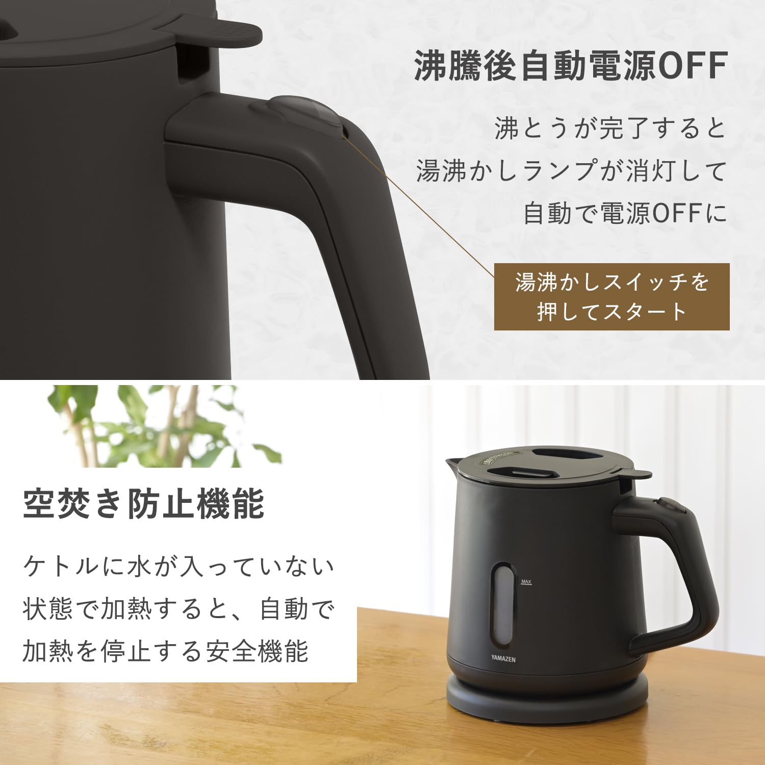 [山善] 電気ケトル 電気ポット 1.0L 1200W 一人暮らし 二人暮らし 湯こぼれ防止 空焚き防止 沸騰後自動電源OFF お手入れ簡単 ブラック YKU-S1210J(B)